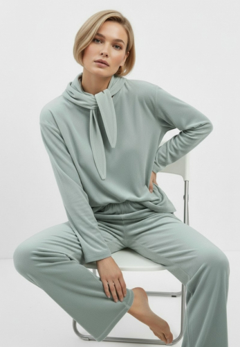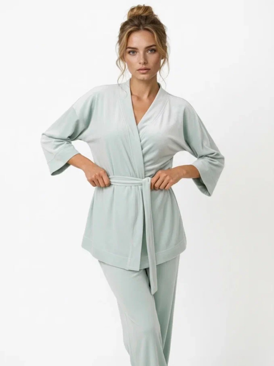 Пижама Кимоно+брюки из велюра OD-836-2 серо-зеленый OD-836-2