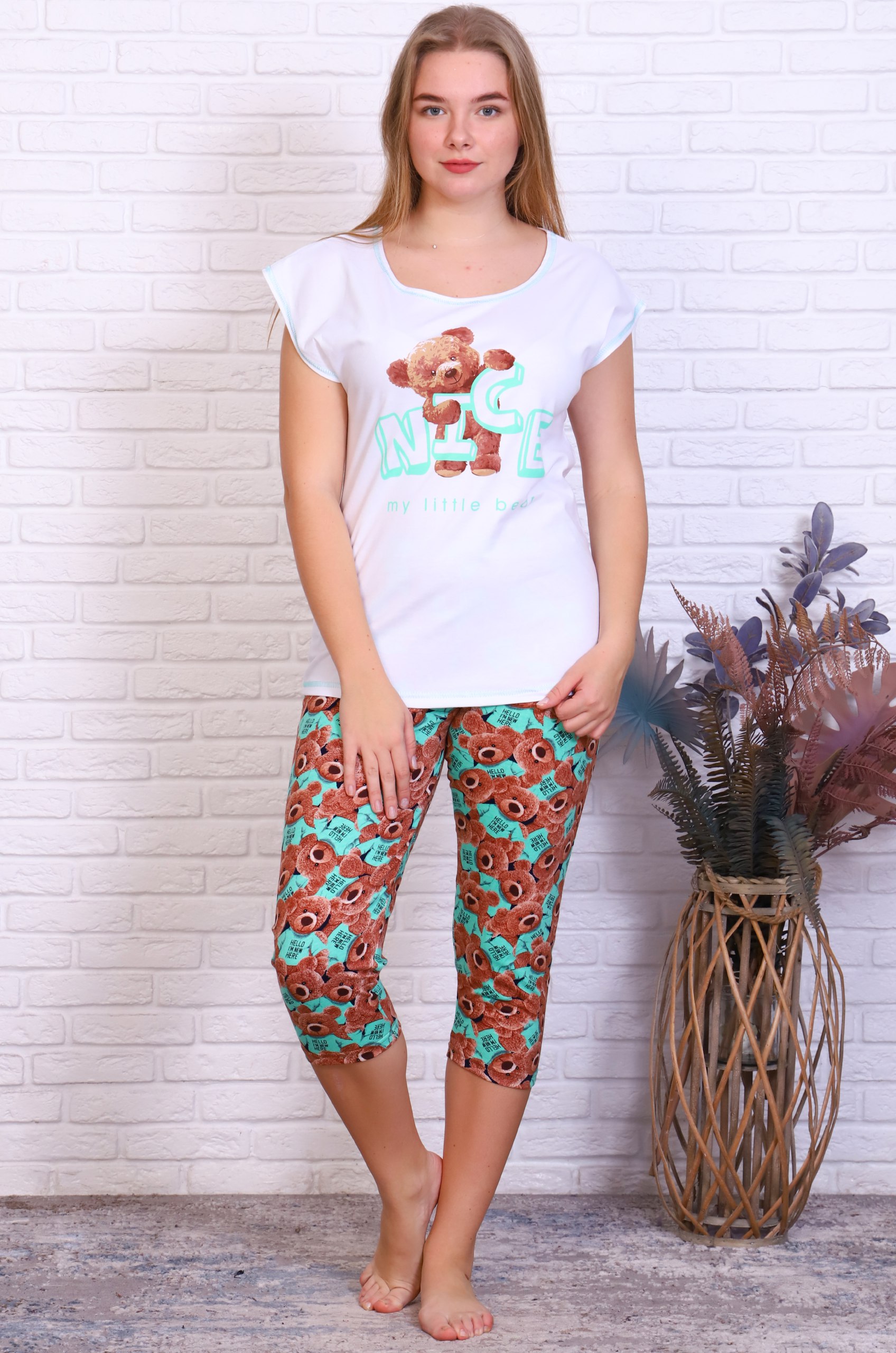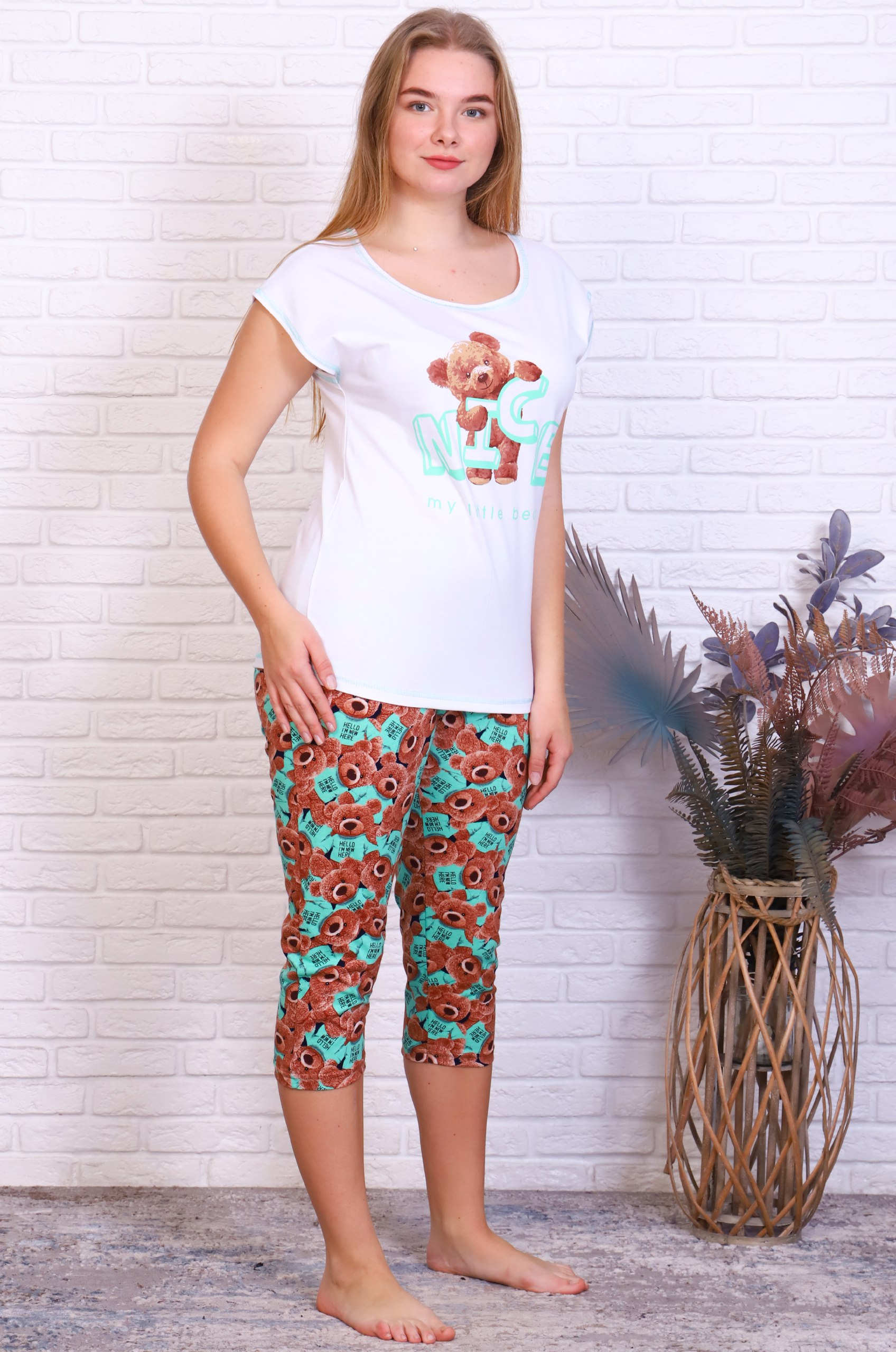 Бриджи с поясом на резинке, футболка с прямого кроя с милым принтом.