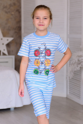 Пижама подростковая из футболки бридж Fruits&bikes голубой