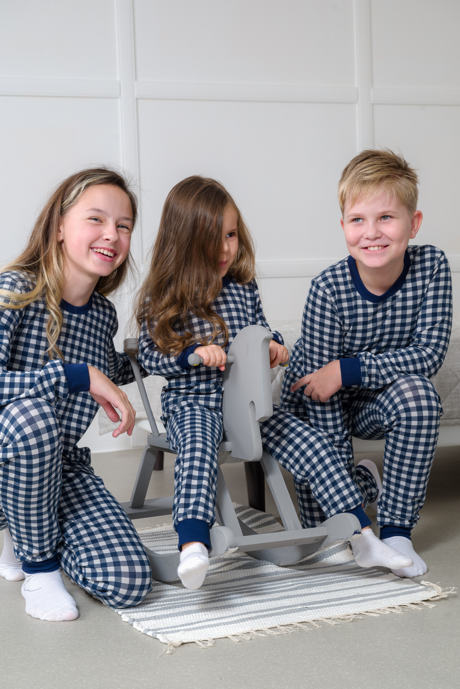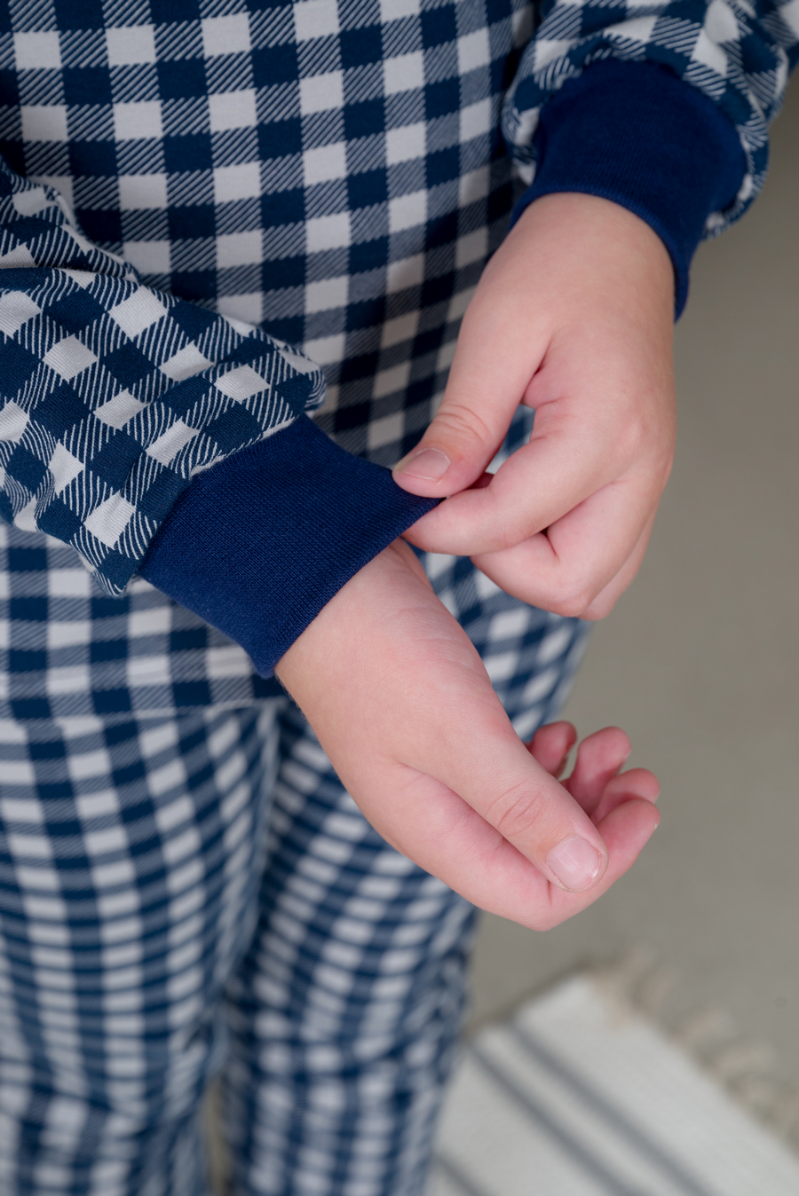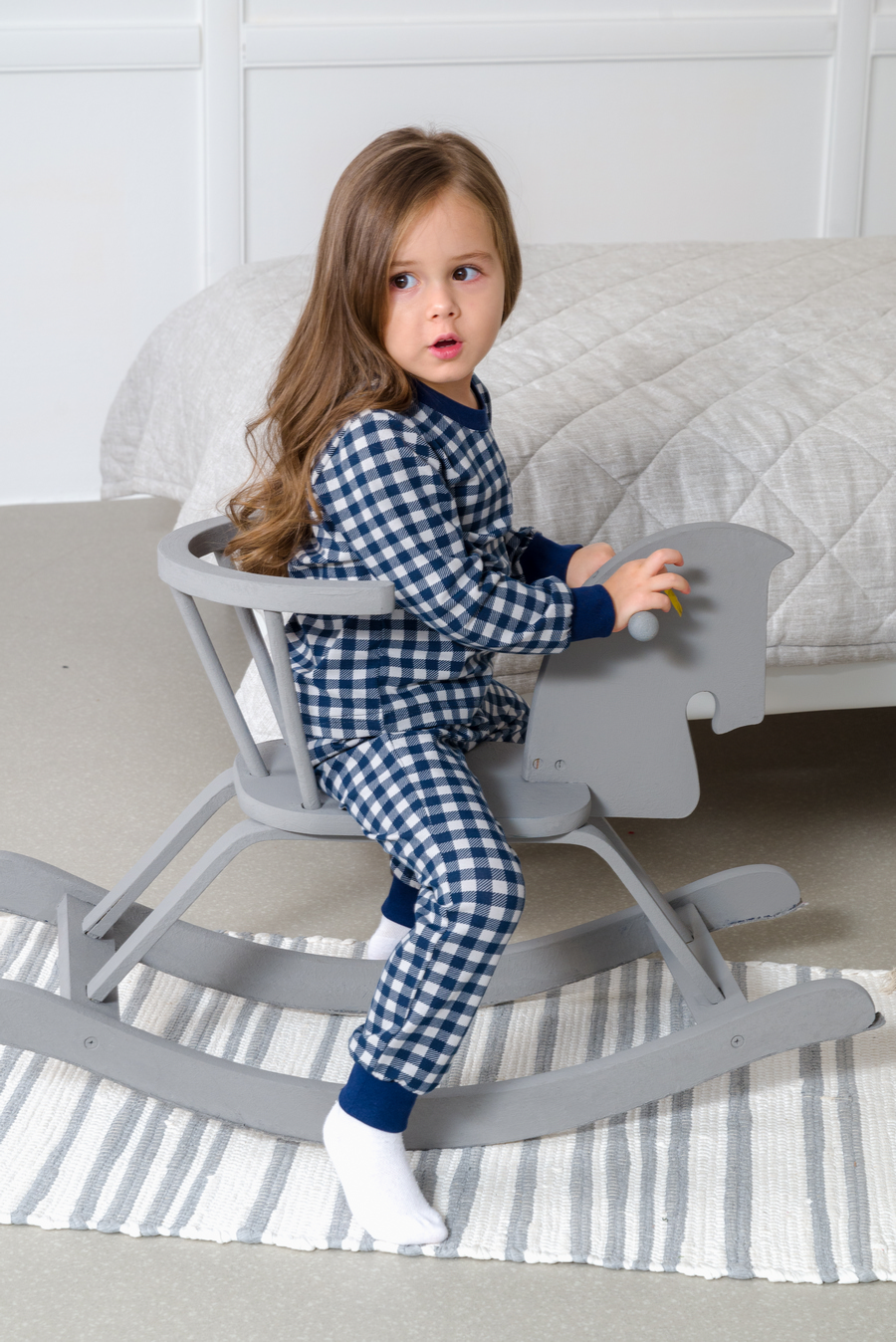 Пижама подростковая из кулирки пенье на манжетах Дрёма клетка синяя