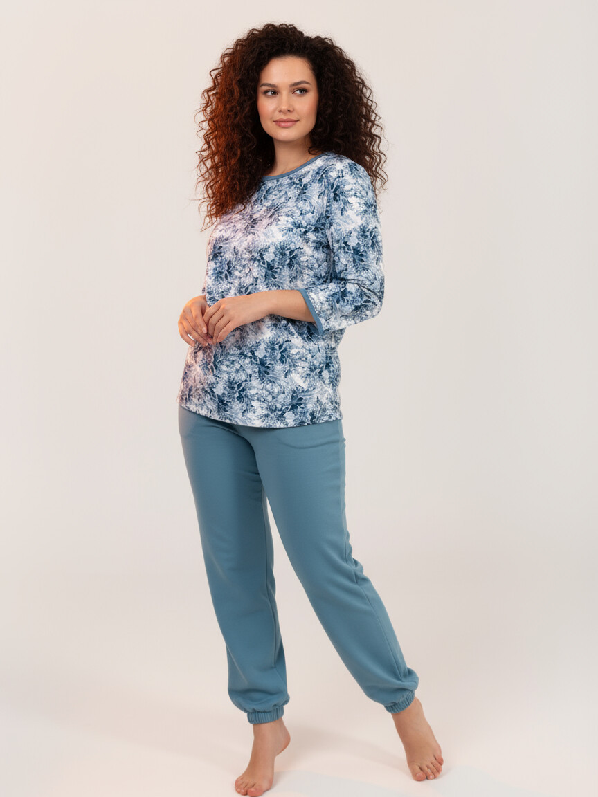 Пижама женская футер 2-х нитка начёс "МАДИНА" ИНДИГО