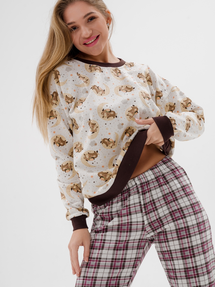 Пижама женская из джемпера и брюк из футера Олененок бычок