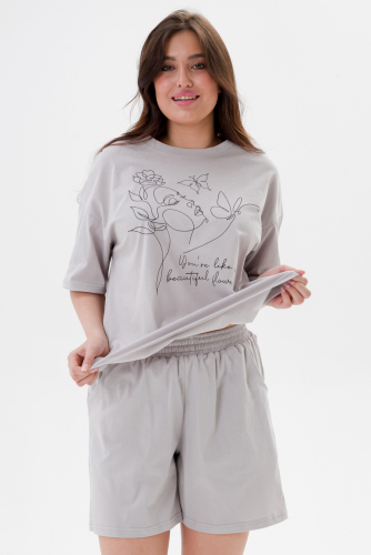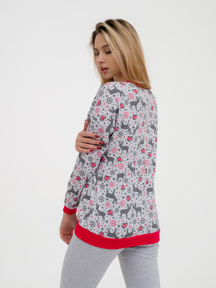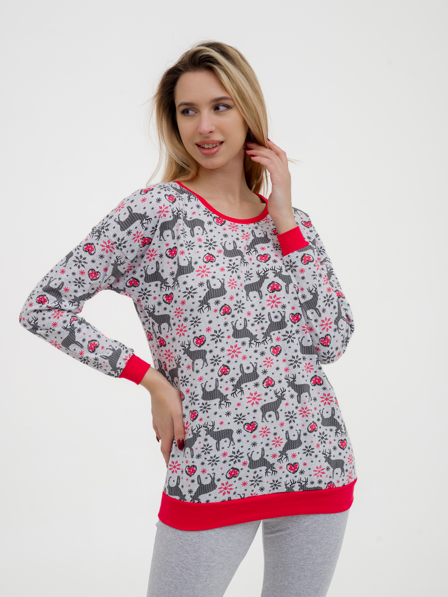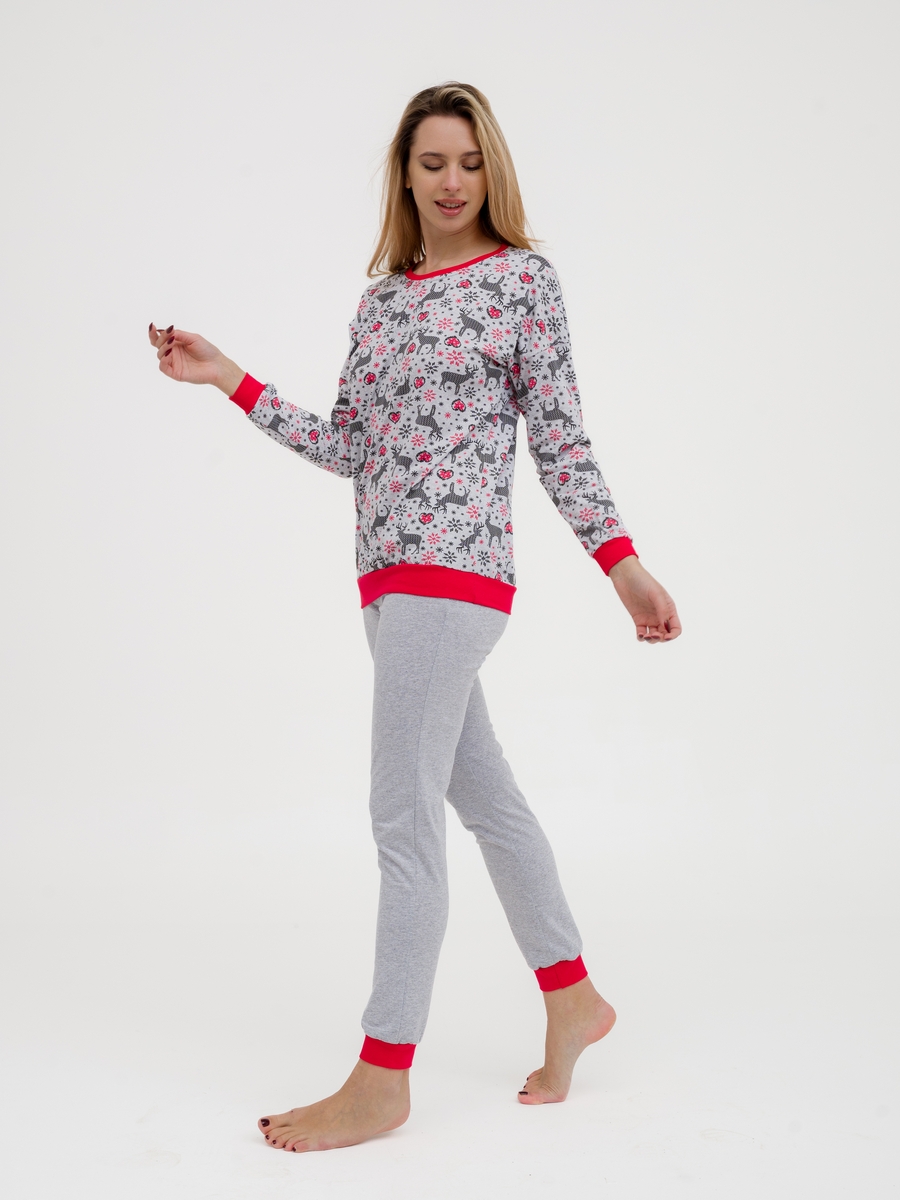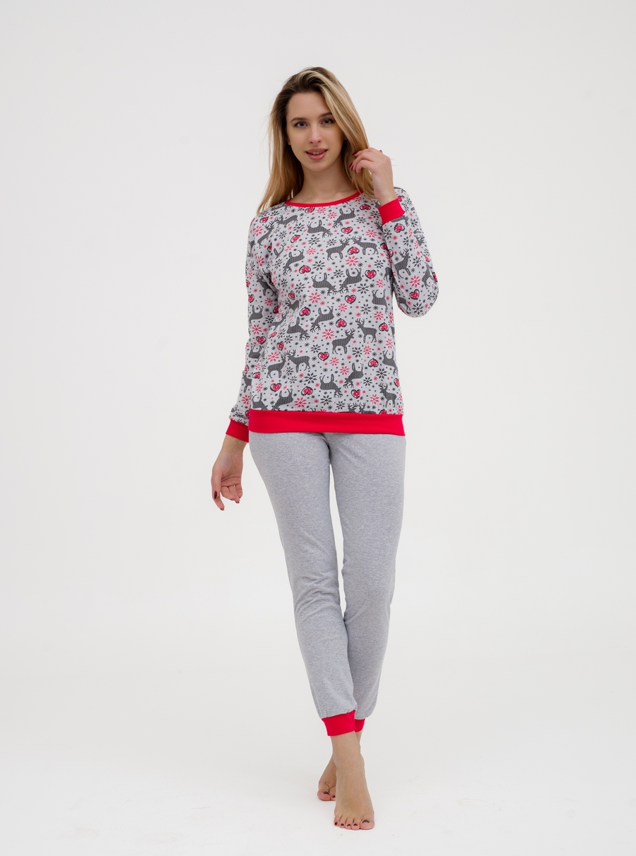Пижама женская из джемпера и брюк из кулирки Олененок красный