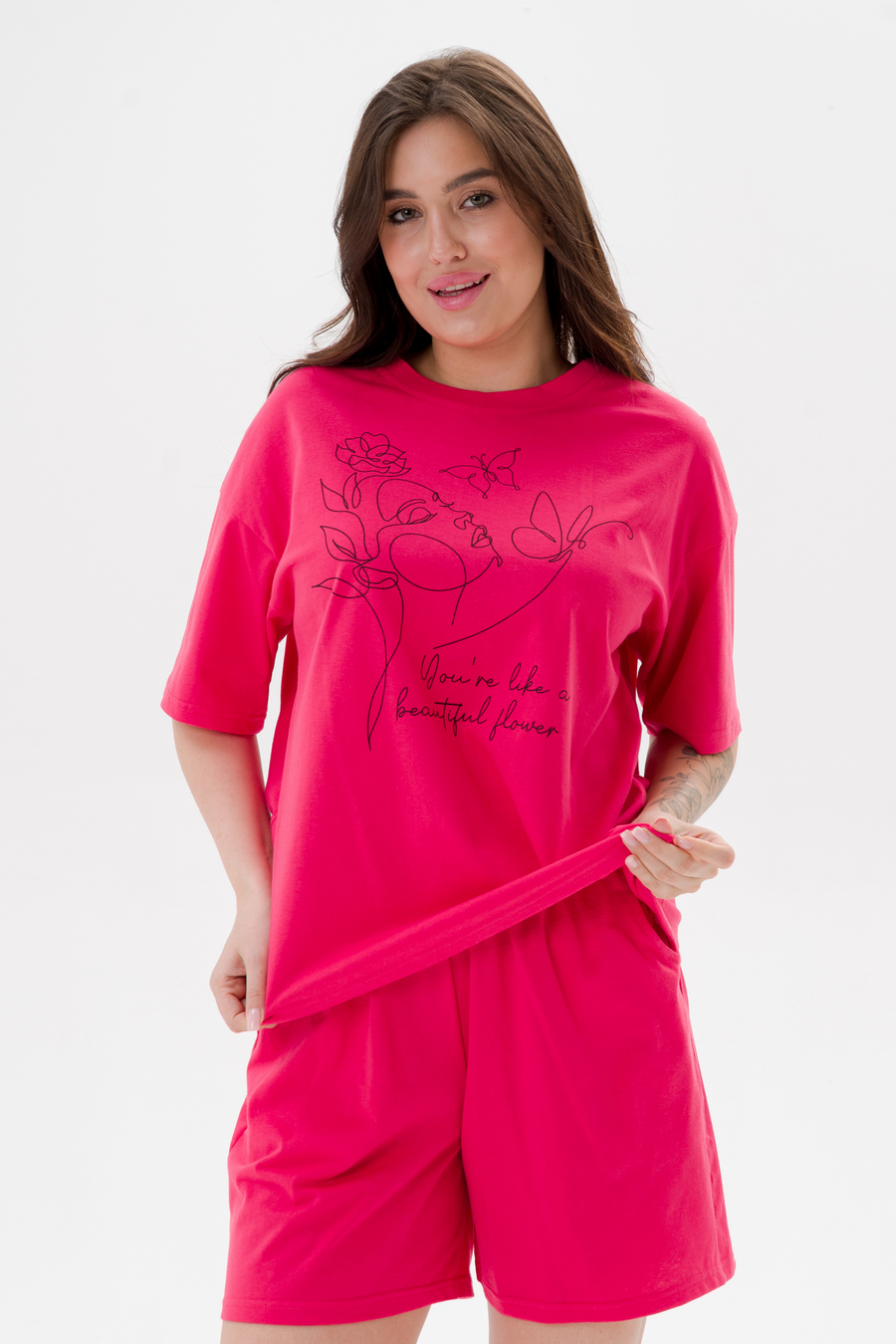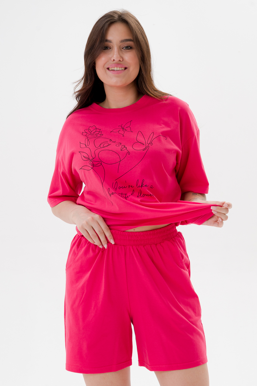 Пижама женская из кулирки Дива клубника макси