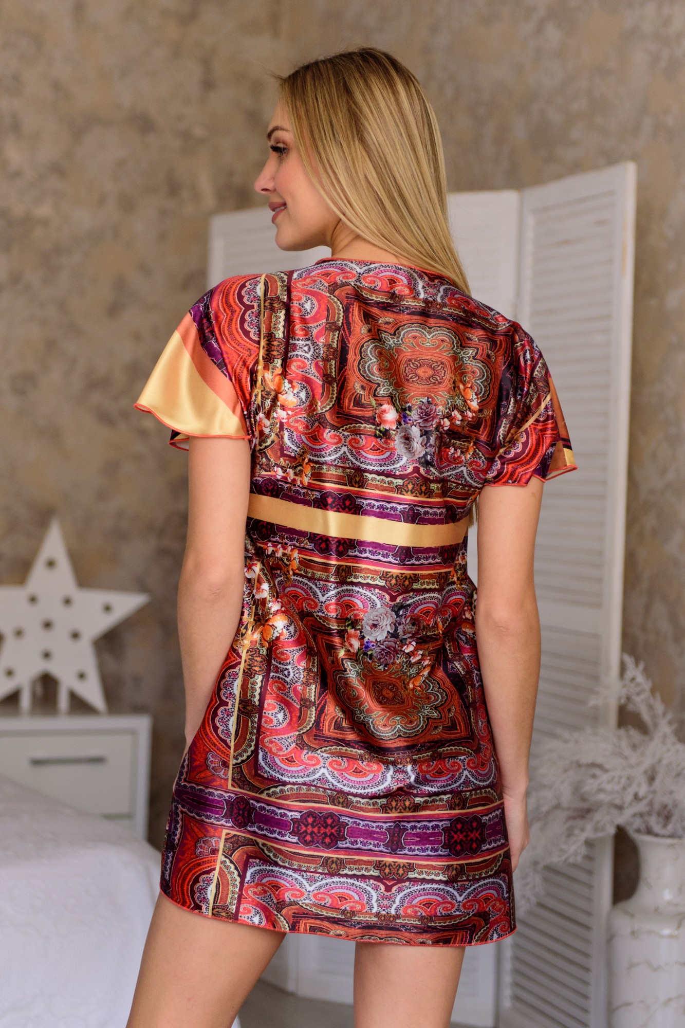 Пижама женская из топа, шорт и пеньюара из шелка Шик сиреневый