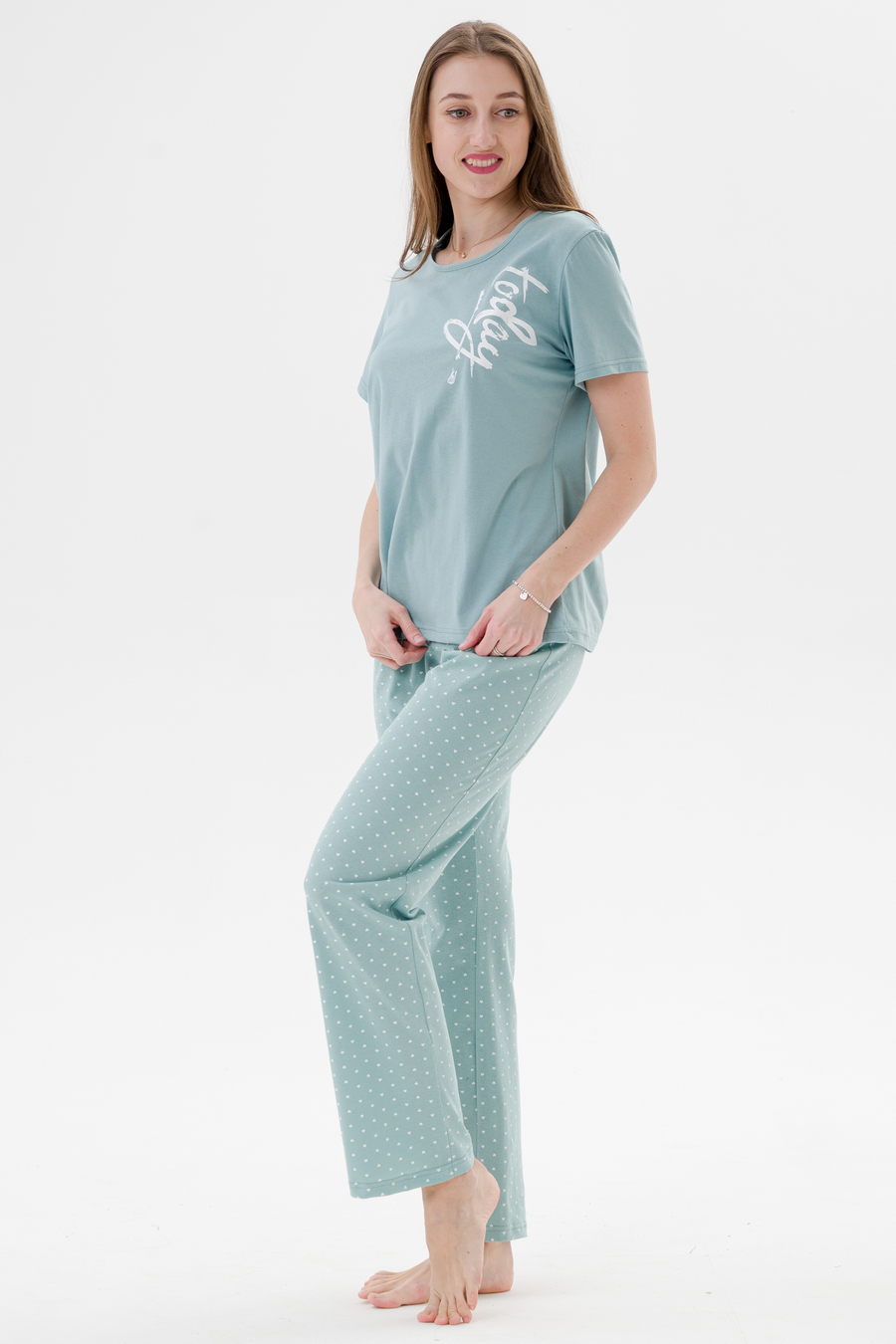 Пижама женская кор. рукав Today зелёный