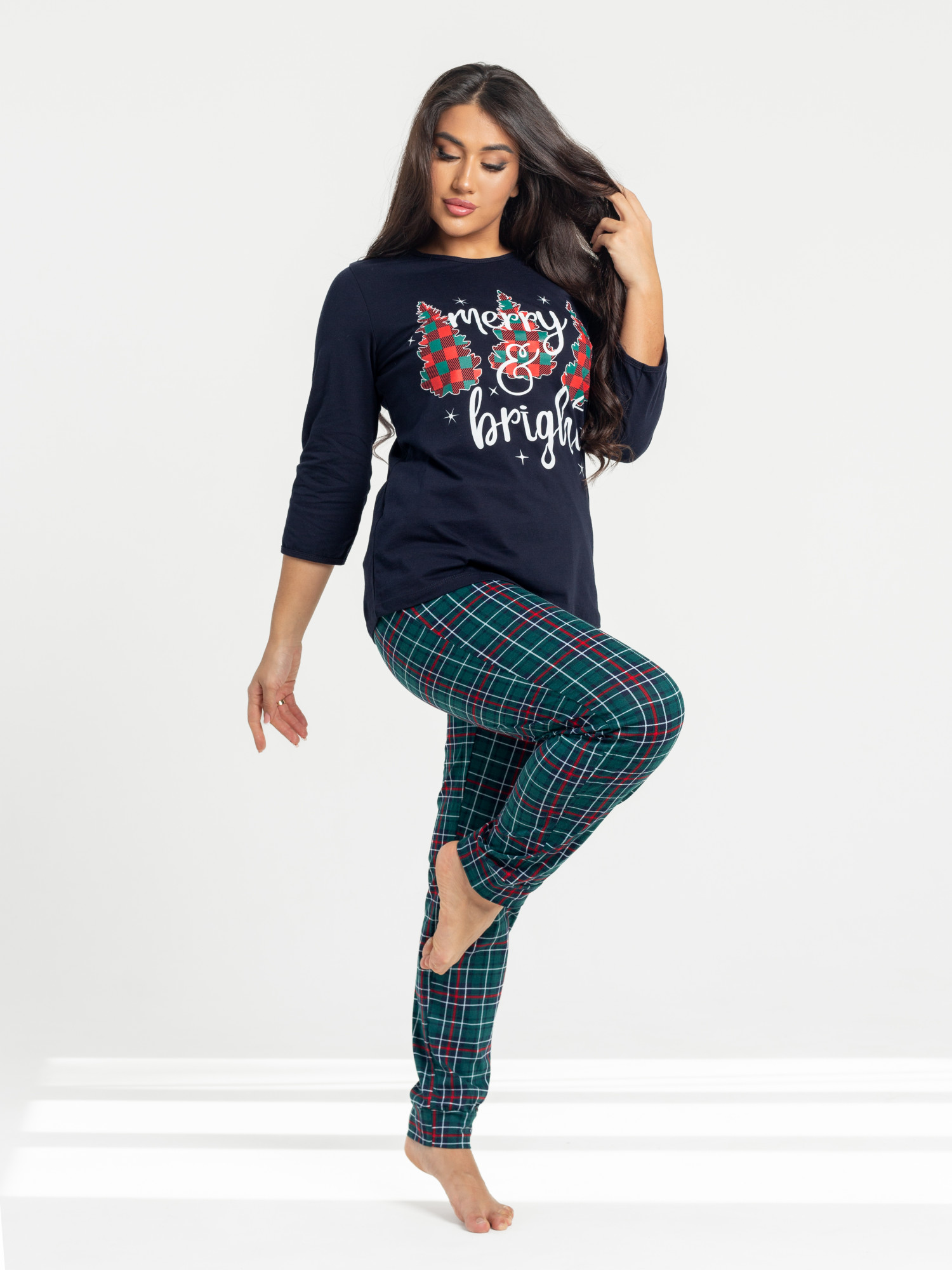 Пижама женская кулирка с брюками "ЕЛКИ" ЗЕЛЕНЫЙ