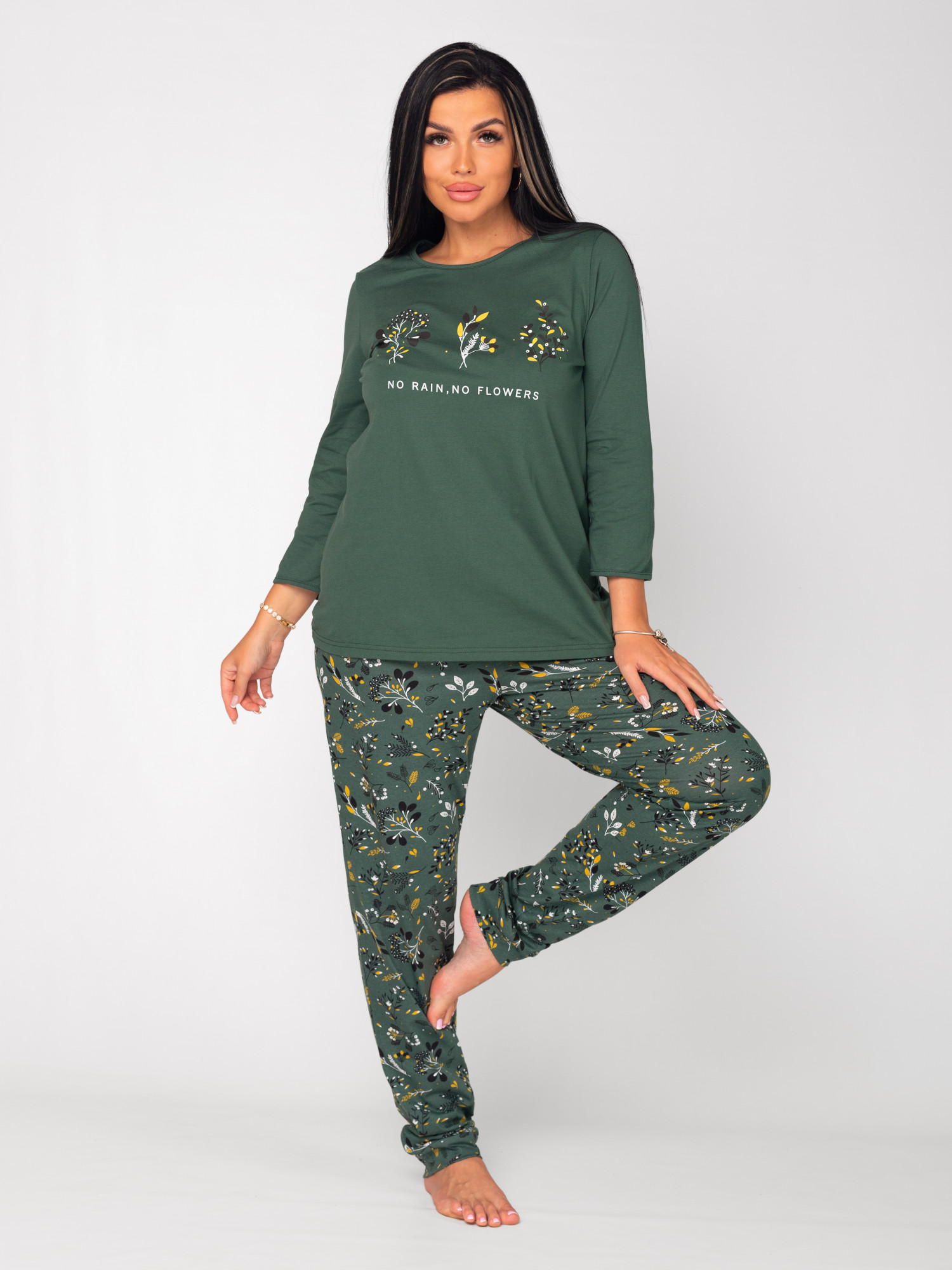 Пижама женская кулирка с брюками "ФИБИ" ЗЕЛЕНЬ