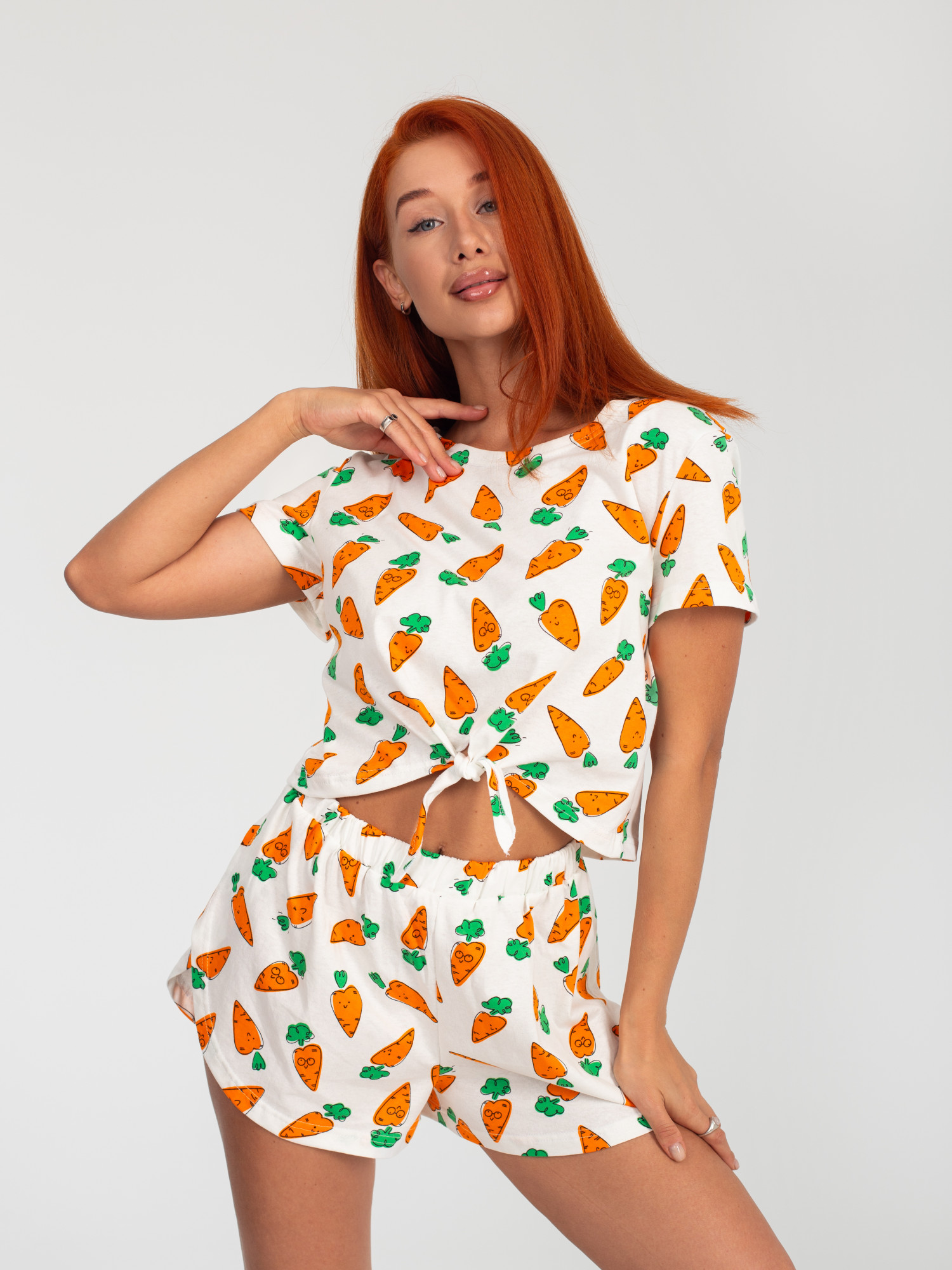 Пижама женская кулирка с шортами "КЕЙТ" МОРКОВКИ