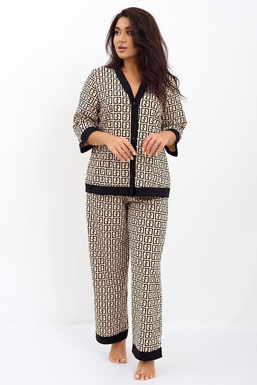Женская пижама из 100% хлопка — идеальный вариант для комфортного сна и уютного отдыха дома. Натуральная ткань мягкая, дышащая и приятная к телу, подходит для повседневного использования в любое время года. Модель выполнена в удобном свободном силуэте, не сковывает движений и обеспечивает максимальный комфорт. Брюки на мягкой резинке, без карманов, удобно сидят по фигуре и не создают лишнего объёма. Кофта застёгивается на пуговицы, что делает пижаму практичной и комфортной в носке, а рукав длиной 3/4 обеспечивает удобство и свободу движений. Пижама отлично подходит не только для сна, но и в качестве стильного и уютного домашнего костюма. Модель представлена в широком размерном ряду и выполнена в трендовых расцветках с актуальными принтами, благодаря чему станет прекрасным подарком для родных и близких — практичным, красивым и по-настоящему комфортным.