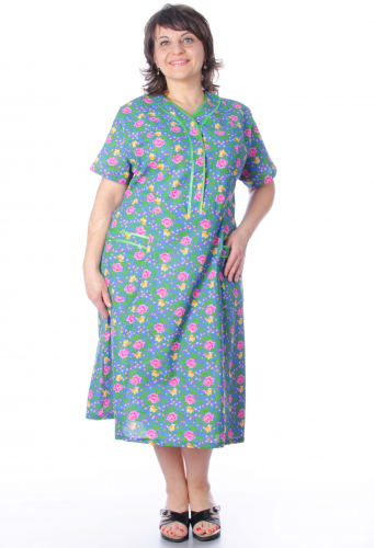 Легкое свободное платье с короткими рукавами и кармашками из качественной набивной бязи.