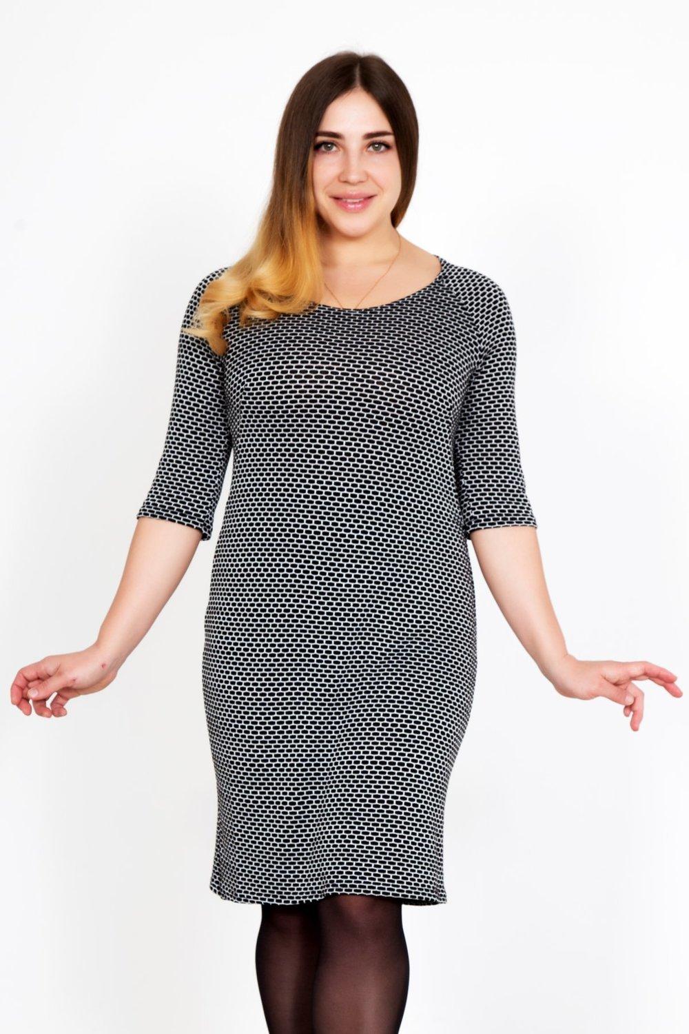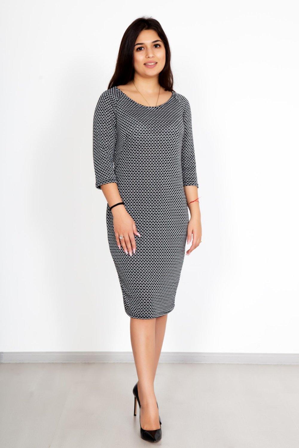 Элегантное платье полуприлегающего силуэта. Рукав реглан, укороченный 3/4. Круглый горловой вырез.