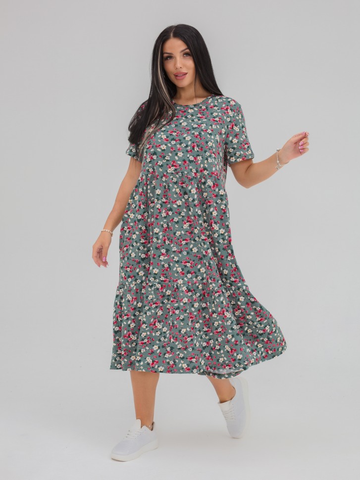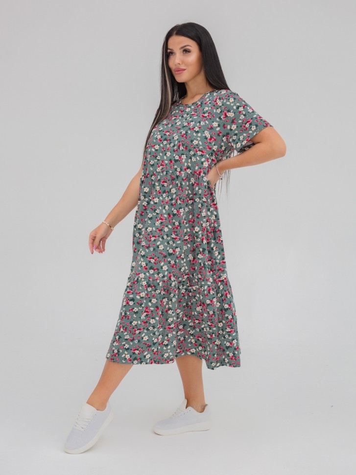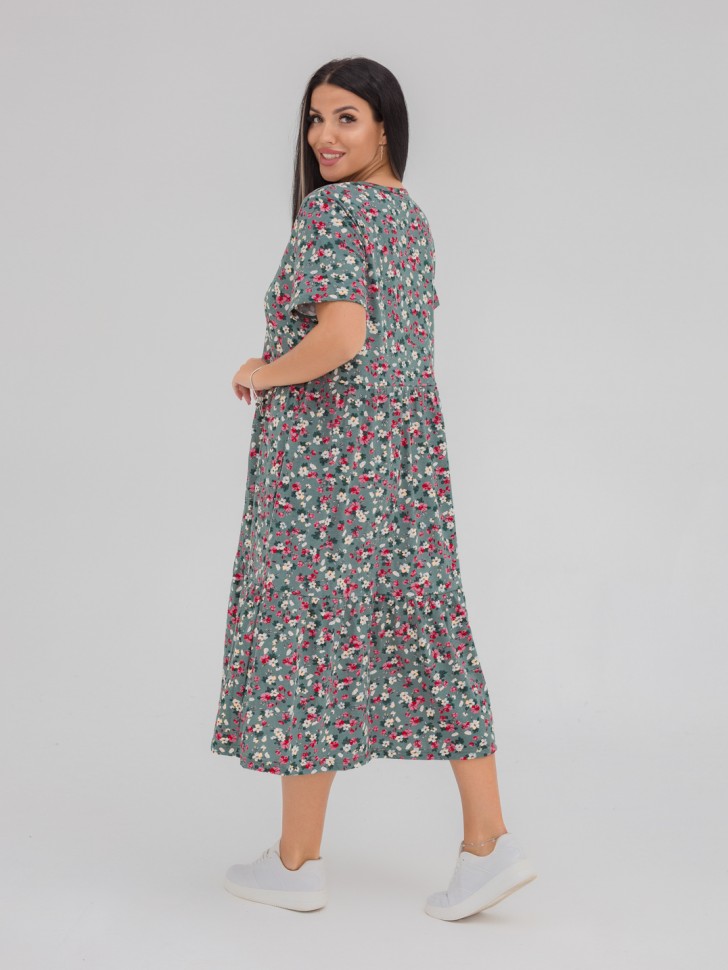 Платье женское арт. МПл-179 зеленое в цветочек