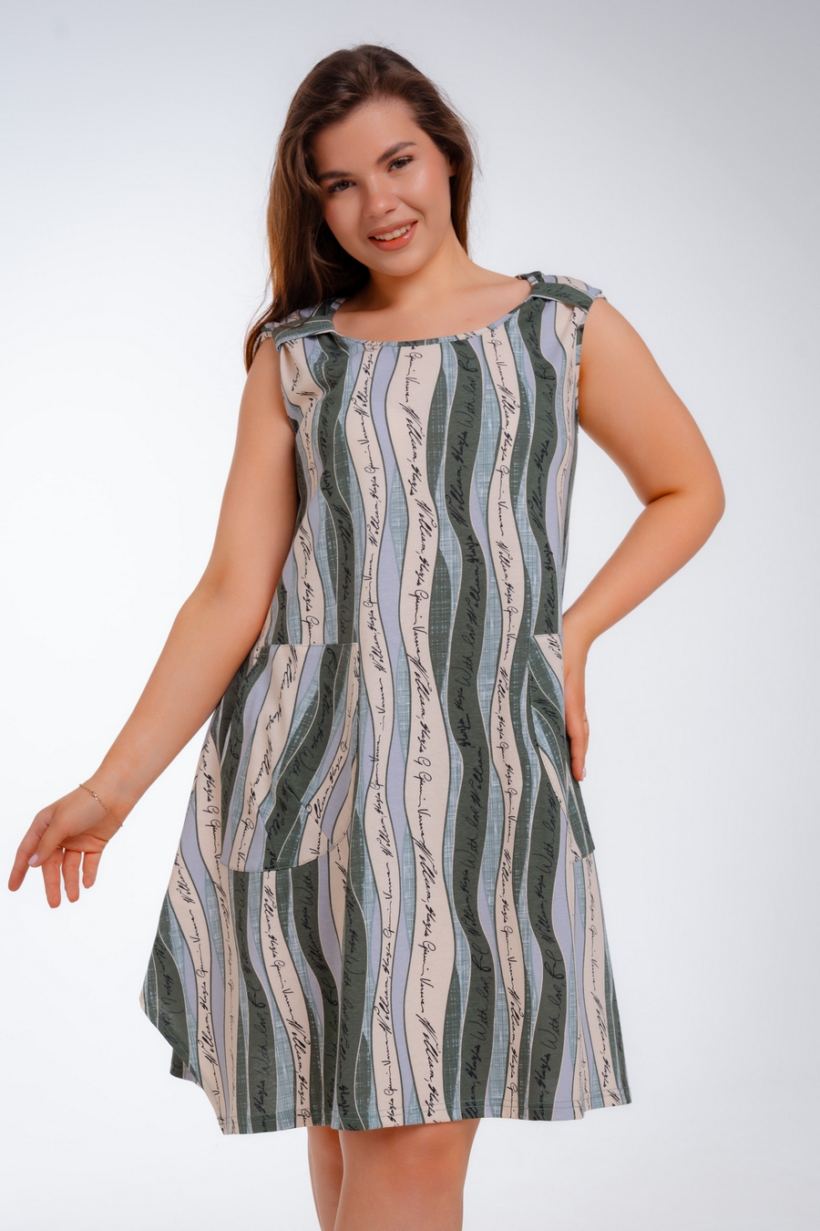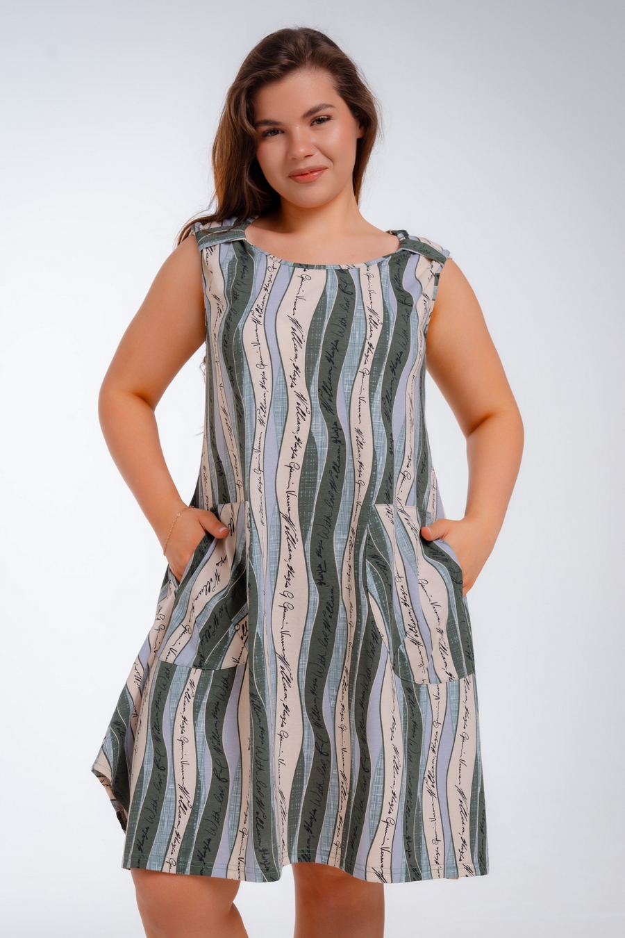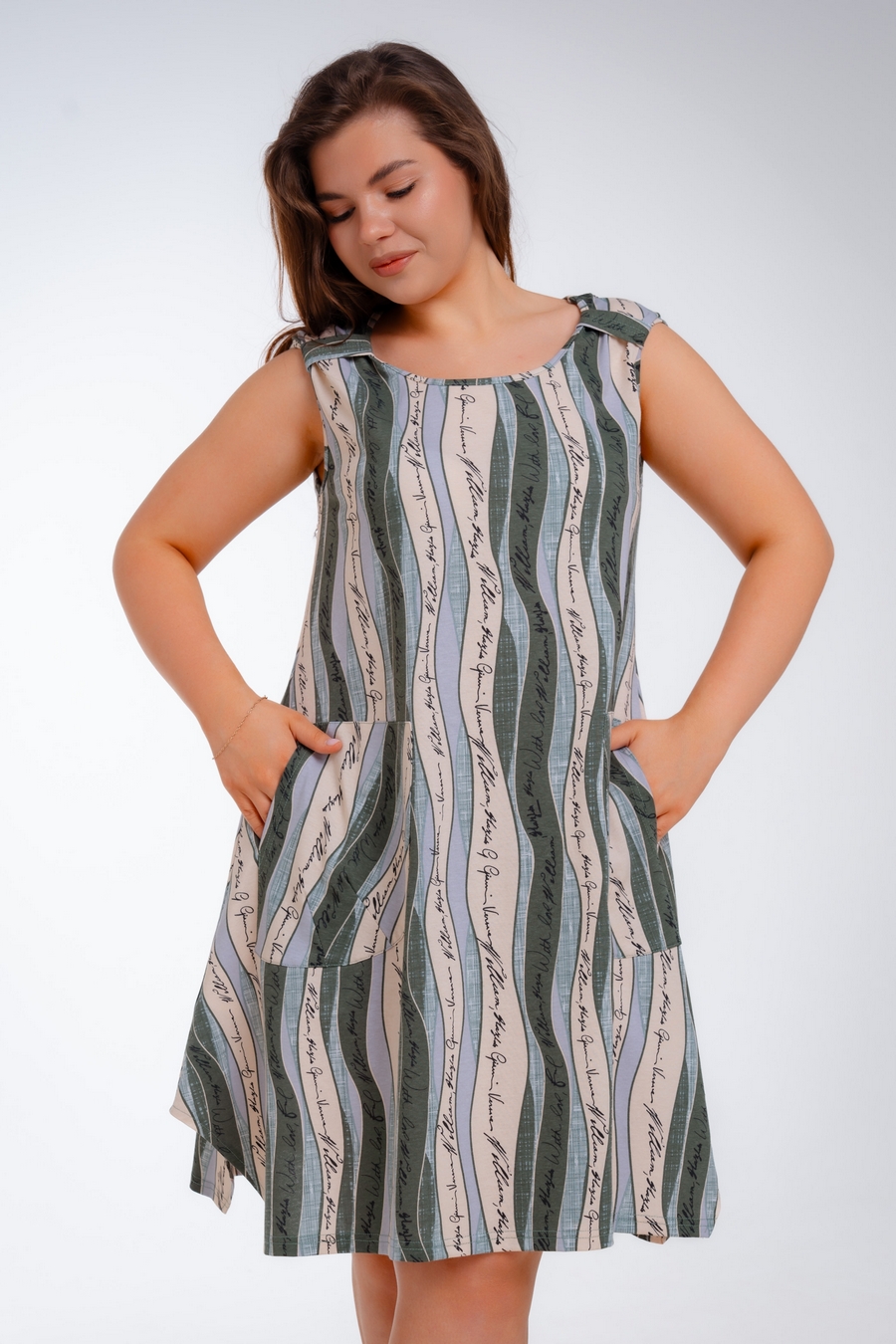 Платье женское из кулирки Кэтрин хаки волна
