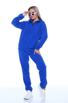 Костюм женский состоит из футболки и брюк. Костюм выполнен из трикотажного полотна кулирка. Кофта свободного силуэта на полочке выполнена печать. Брюки-чиносы слегка заужены к низу, по бокам имеются карманы, пояс на резинке. Цвет: синий; Материал: кулирка;кулирка; Состав: 100% хлопок.
