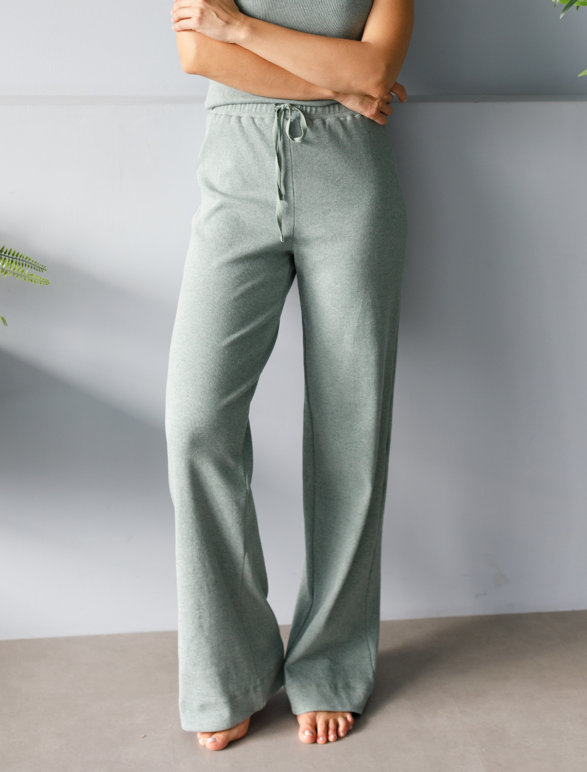 Прямые брюки из фактурного трикотажа в рубчик D44.121 оливковый меланж