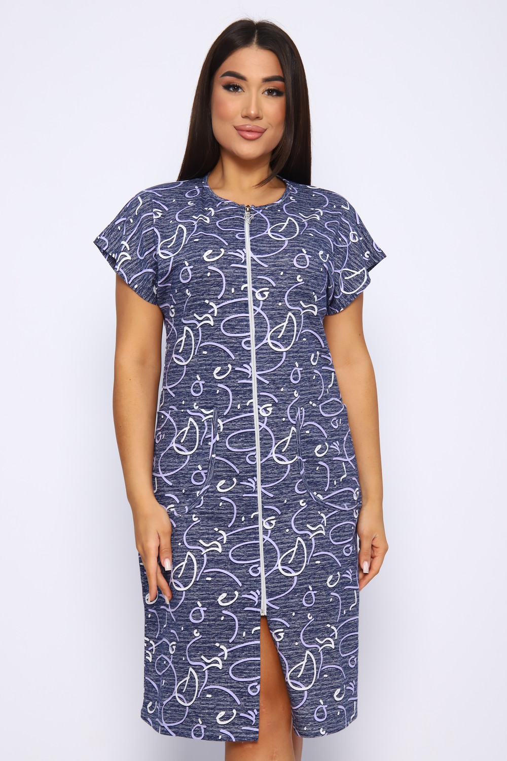 Халат женский на молнии оригинальной расцветки выполнен из кулирки 100% хлопок. Халат со спущенным рукавом, карман закругленной формы. Рукава подшиты, горловина и карманы обработаны узким кантом из основной ткани. Халат идеально подойдет для повседневной носки и для отдыха. Цвет: пудра;синий; Материал: кулирка;кулирка; Состав: 100% хлопок.
