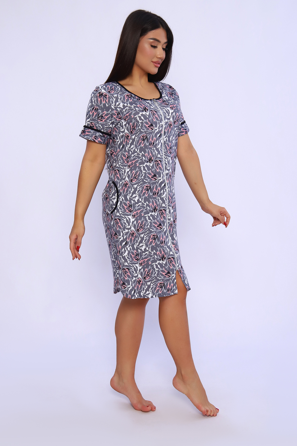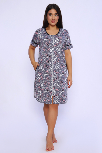 Халат женский на молнии оригинальной расцветки выполнен из кулирки 100% хлопок. Горловина, карманы и рукава отделаны контрастным кантом, по бокам разрезы с закруглением. Халатик идеально подойдет для дома и отдыха. Цвет: серый; Материал: кулирка;кулирка; Состав: 100% хлопок.