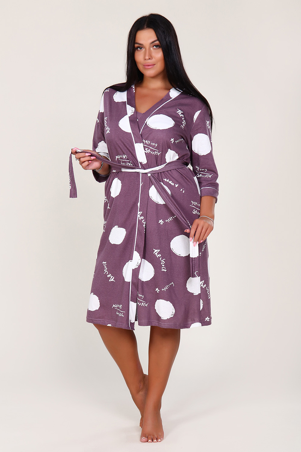 Комплект домашней одежды, состоящий из халата, топа и шорт, выполнен из 100% хлопка с принтом Миша и отличается комфортом, натуральным составом и милым дизайном Цвет: сливовый;синий; Материал: кулирка;кулирка; Состав: хлопок 100%.