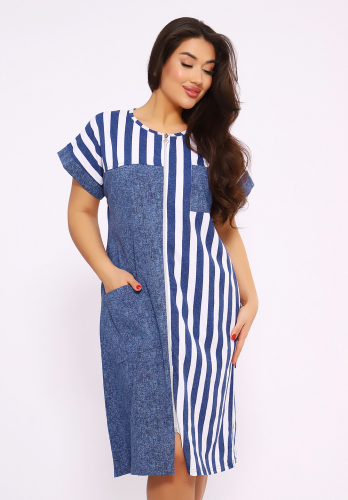 Женский халат на молнии из набивной кулирки в стильной джинсовой полоске