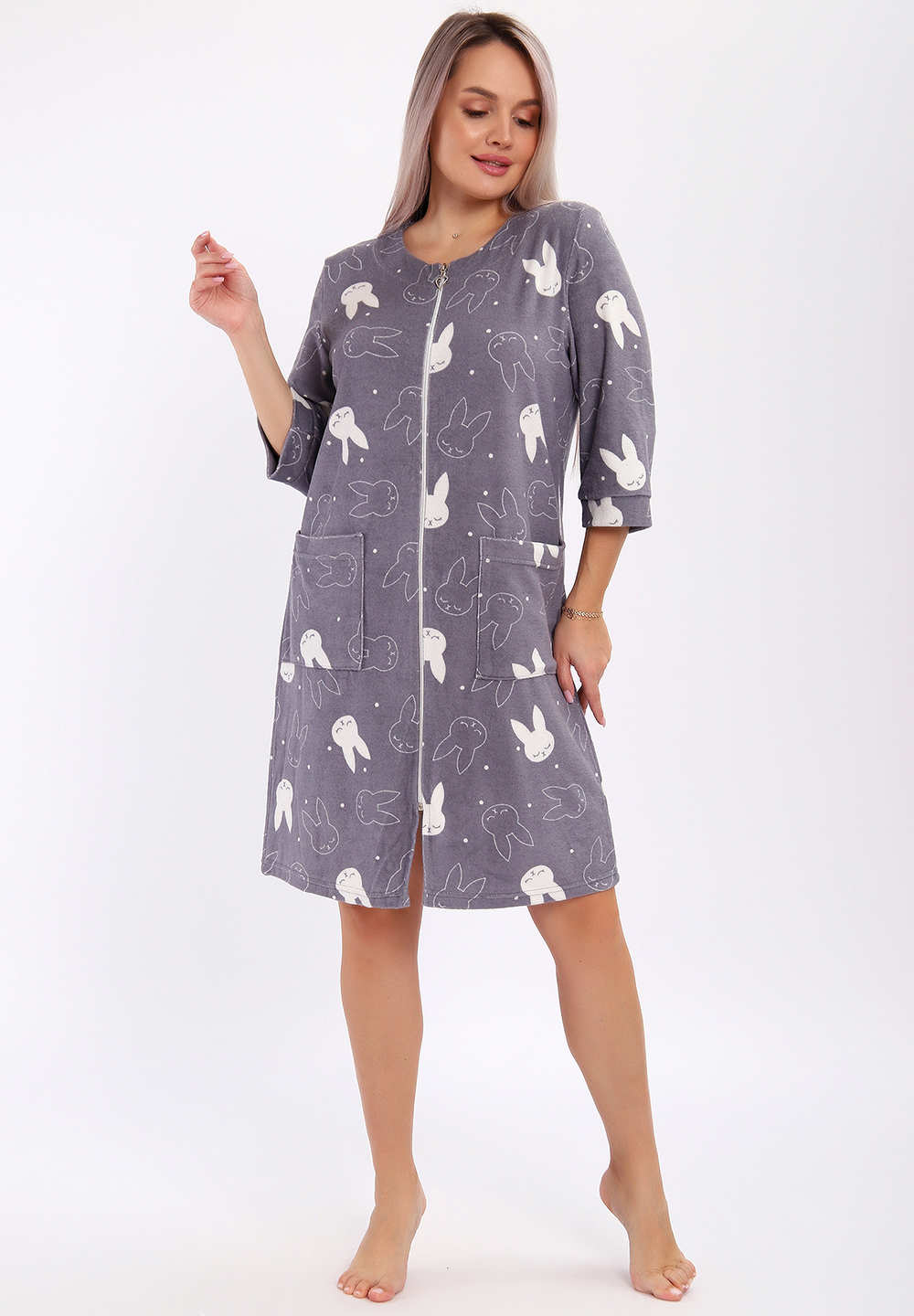 Халат махровый на молнии и двумя карманами. Цвет: графит;бежевый;леопард;фисташковый;песочный; Материал: махра; Состав: хлопок 80%, п/э 20%.