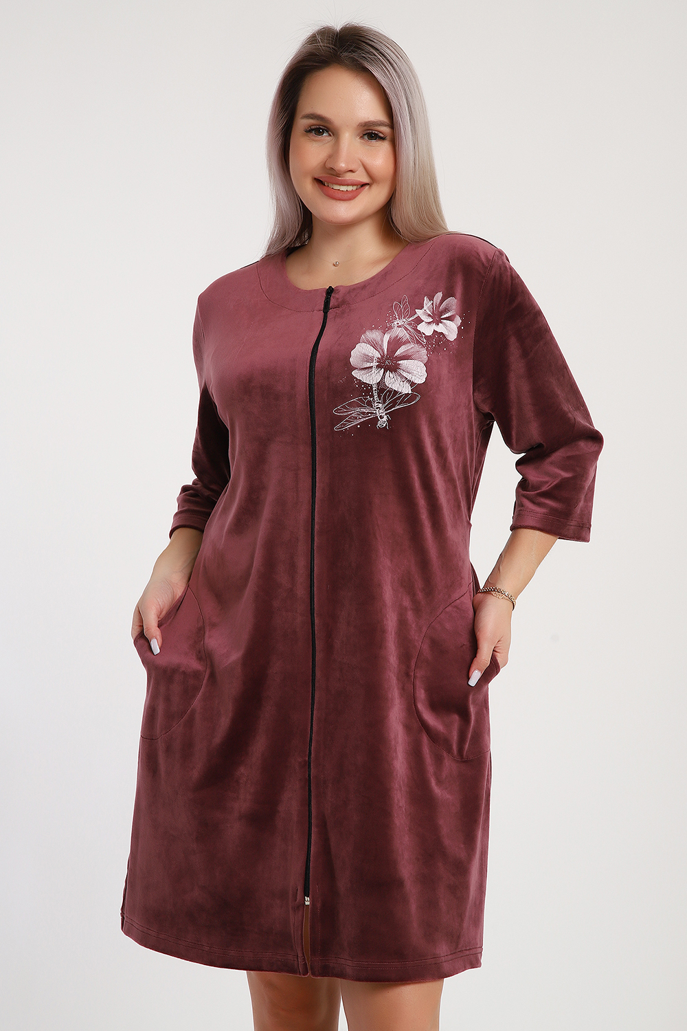 Этот уютный велюровый халат на молнии идеально подойдет для комфортных домашних дней. Мягкий и приятный на ощупь материал с флористическим принтом создает атмосферу уюта и стиля. Халат оснащен двумя вместительными карманами для удобства и застегивается на молнию, что обеспечивает легкость в использовании. Идеальный выбор для тех, кто ценит комфорт и элегантность в повседневной одежде. Цвет: синий;брусничный; Материал: велюр; Состав: п/э 95%, спандекс 5%.