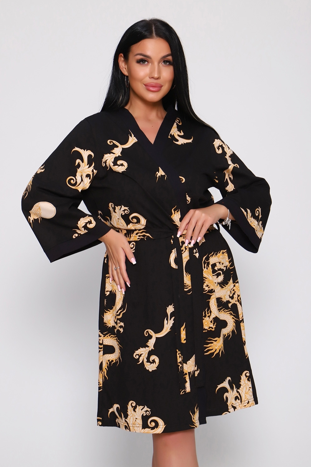 Халат свободного кроя с поясом, рукава 3/4, длина до колена идеально для комфортных и стильных будней.