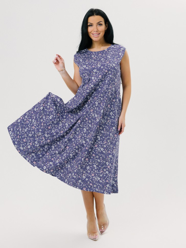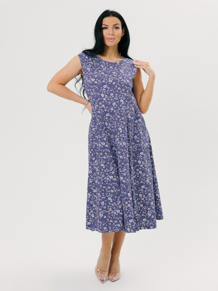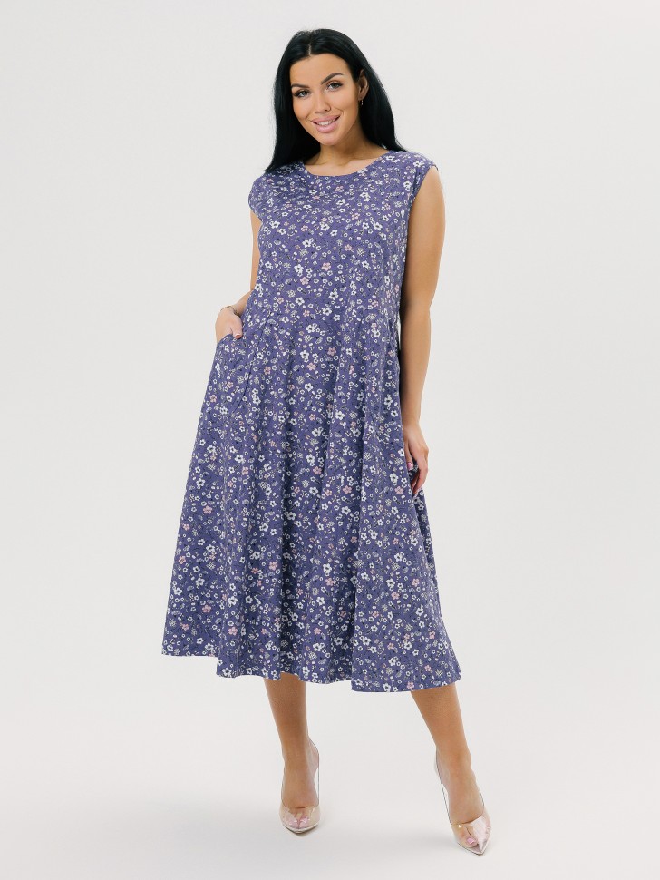 Сарафан отрезной на большой размер, крой свободный, накладные фигурные карманы. Состав: набивное кулирное полотно (100% хлопок). Размеры:50-68
