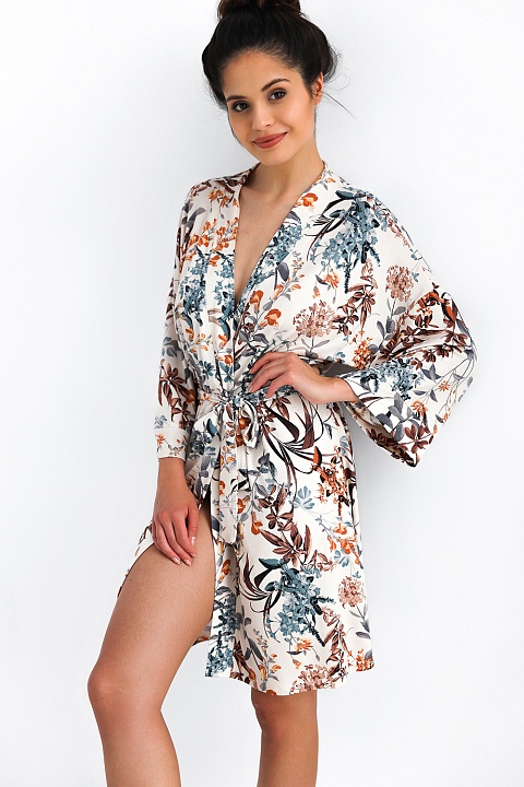 Легкий халат-кимоно Dolores с растительным принтом и длинными свободными рукавами. Идеальное сочетание с пижамой и сорочкой Dolores.