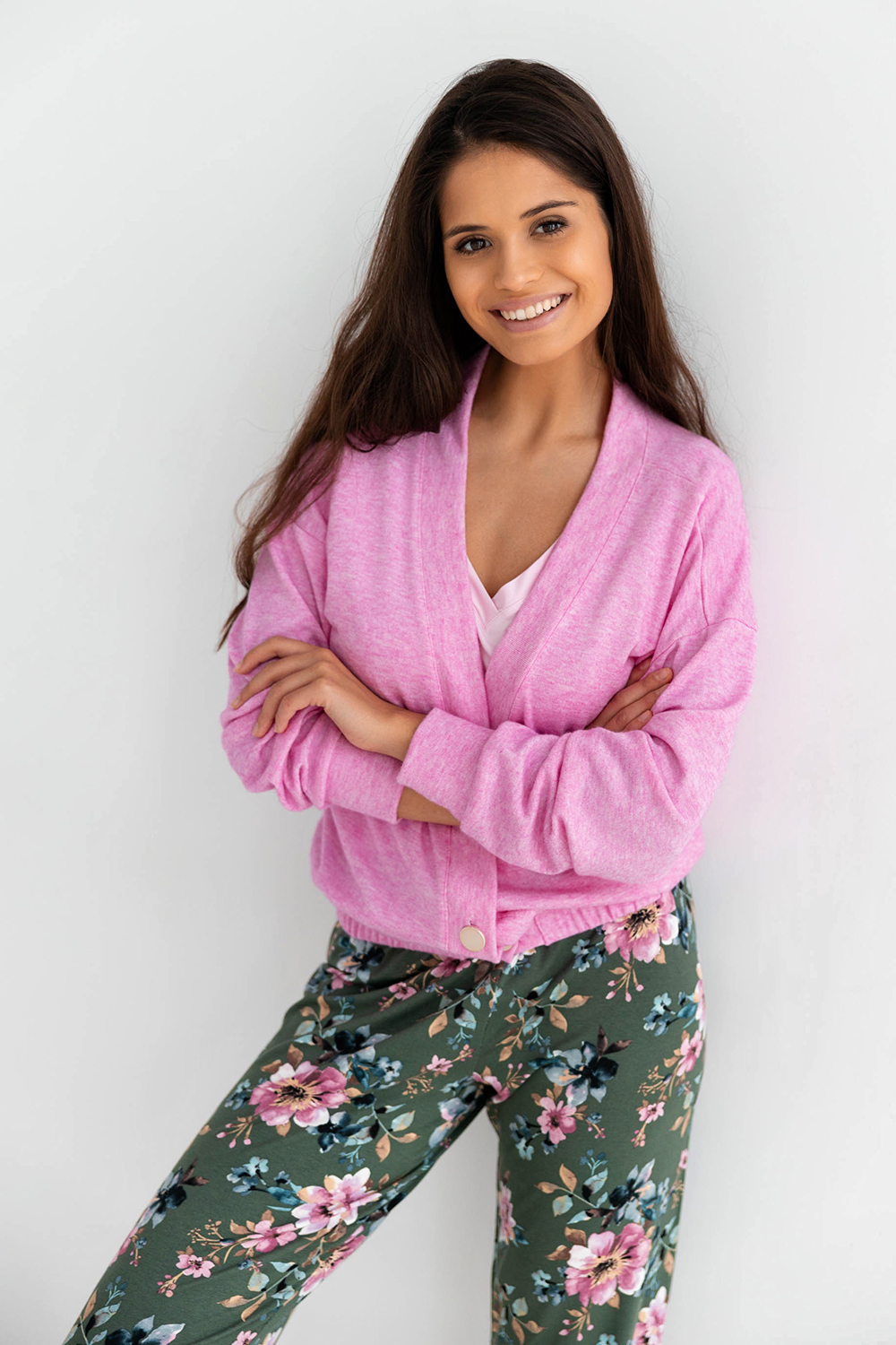 Розовый кардиган Pinkey с V-образным вырезом и длинными рукавами. Застегивается на две пуговицы.