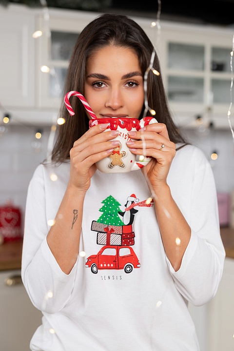 Пижама Lillian состоит из лонгслива и брюк с принтом. Брюки заужены к низу, с контрастными манжетами. Идеальный вариант не только для сна, но и для домашнего отдыха.