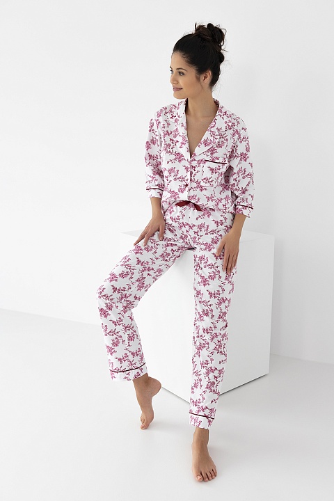 Пижама Rosaline состоит из хлопковой блузы и брюк с принтом. Брюки на широкой резинке. Идеальный вариант не только для сна, но и для домашнего отдыха.