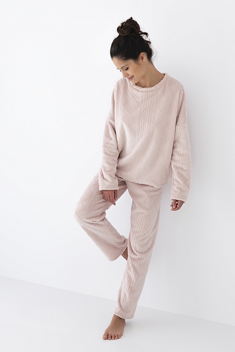 Пижама Ruth состоит из свитшота и брюк. Брюки брюки прямого кроя. Идеальный вариант не только для сна, но и для домашнего отдыха.