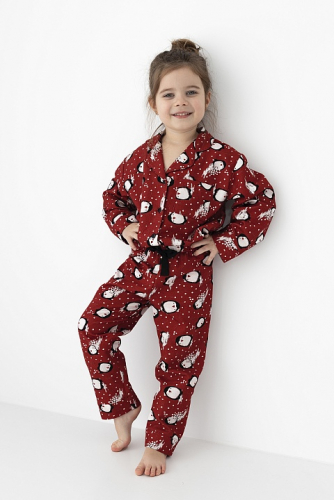 Детская пижама Tiggy состоит из рубашки и брюк. Брюки прямого кроя. Рубашка с фигурным воротом. Материал выполнен с забавным мультяшным принтом. На брюках контрастный бантик на поясе.
