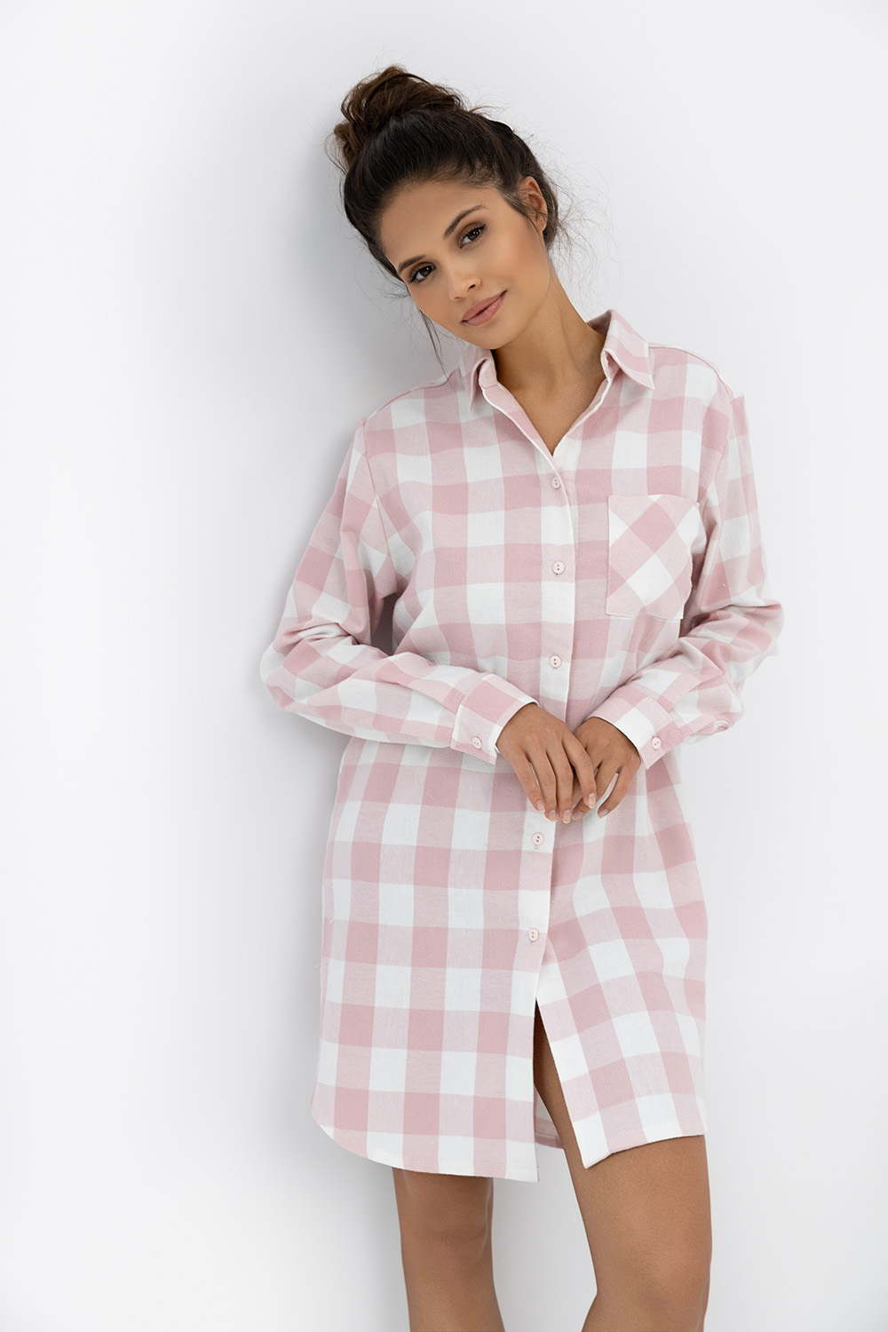 Повседневная сорочка рубашечного типа Marley в крупную "клетку". Изделие на пуговицах, с фигурным воротником. Рукава оформлены манжетами. Идеально подойдет не только для сна, но и для отдыха в домашней обстановке.