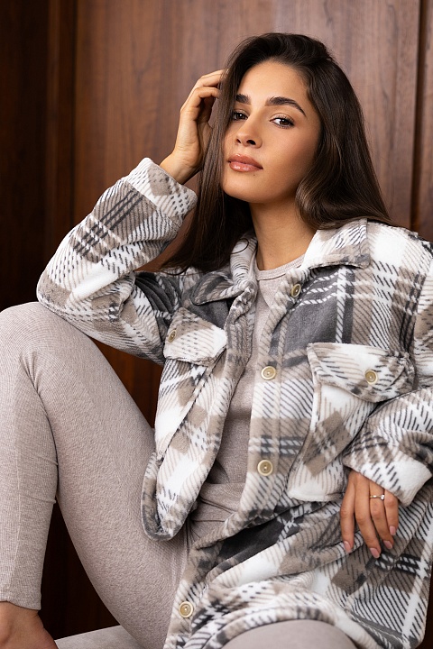 Сорочка Milou рубашечного типа в крупную клетку. Рукава максимальной длины. Прямой крой и длина чуть выше колен.