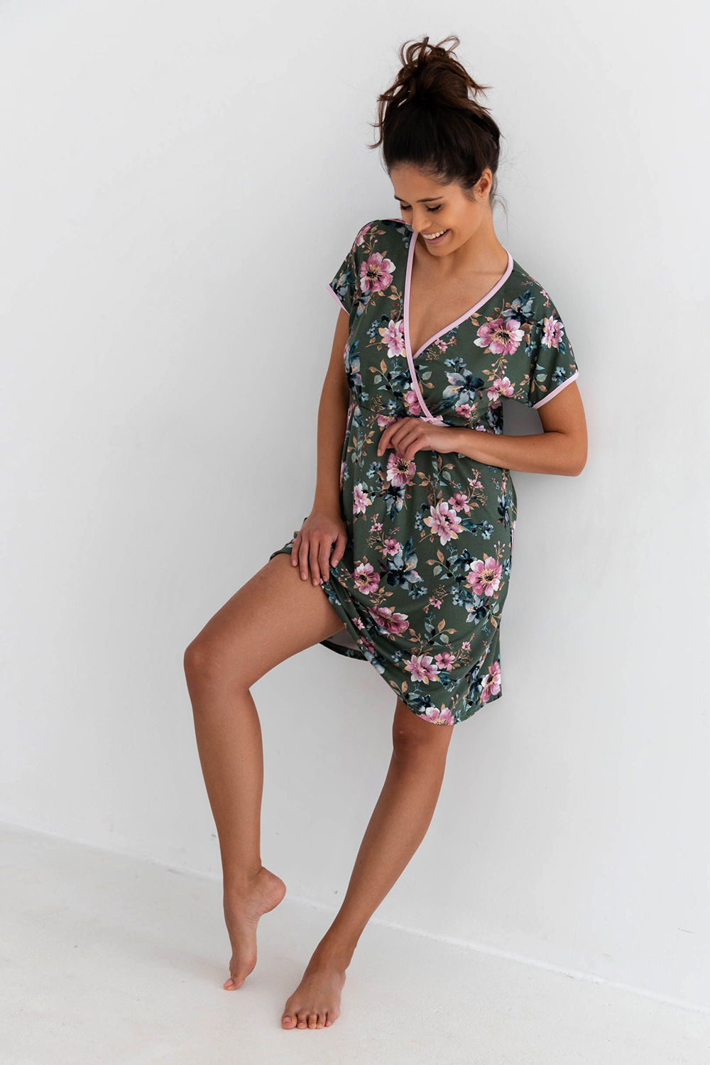 Ночная сорочка Rose Pink, идеальна как для беременных, так и во время грудного вскармливания. Модель изготовлена из вискозного полотна. Дизайн простого, удобного кроя - предполагается вырез, который облегчит кормление. Все дополняется нежным цветочным узором.