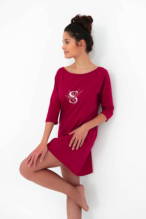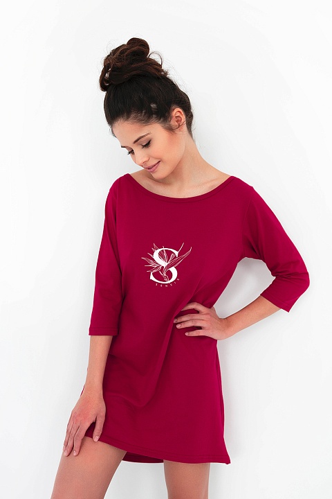 Сорочка Sarah с принтом. Рукава 3/4. Свободный силуэт и длина чуть выше колен. Идеальный вариант для комфортного отдыха дома.