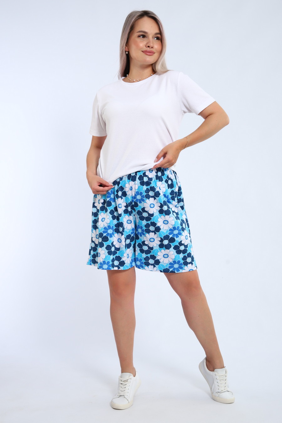 Шорты женские из кулирки Цветник голубая ромашка макси