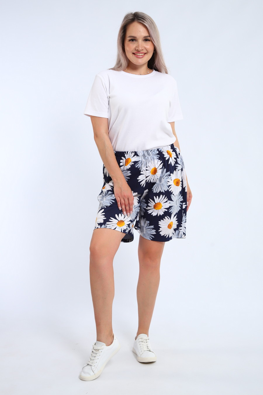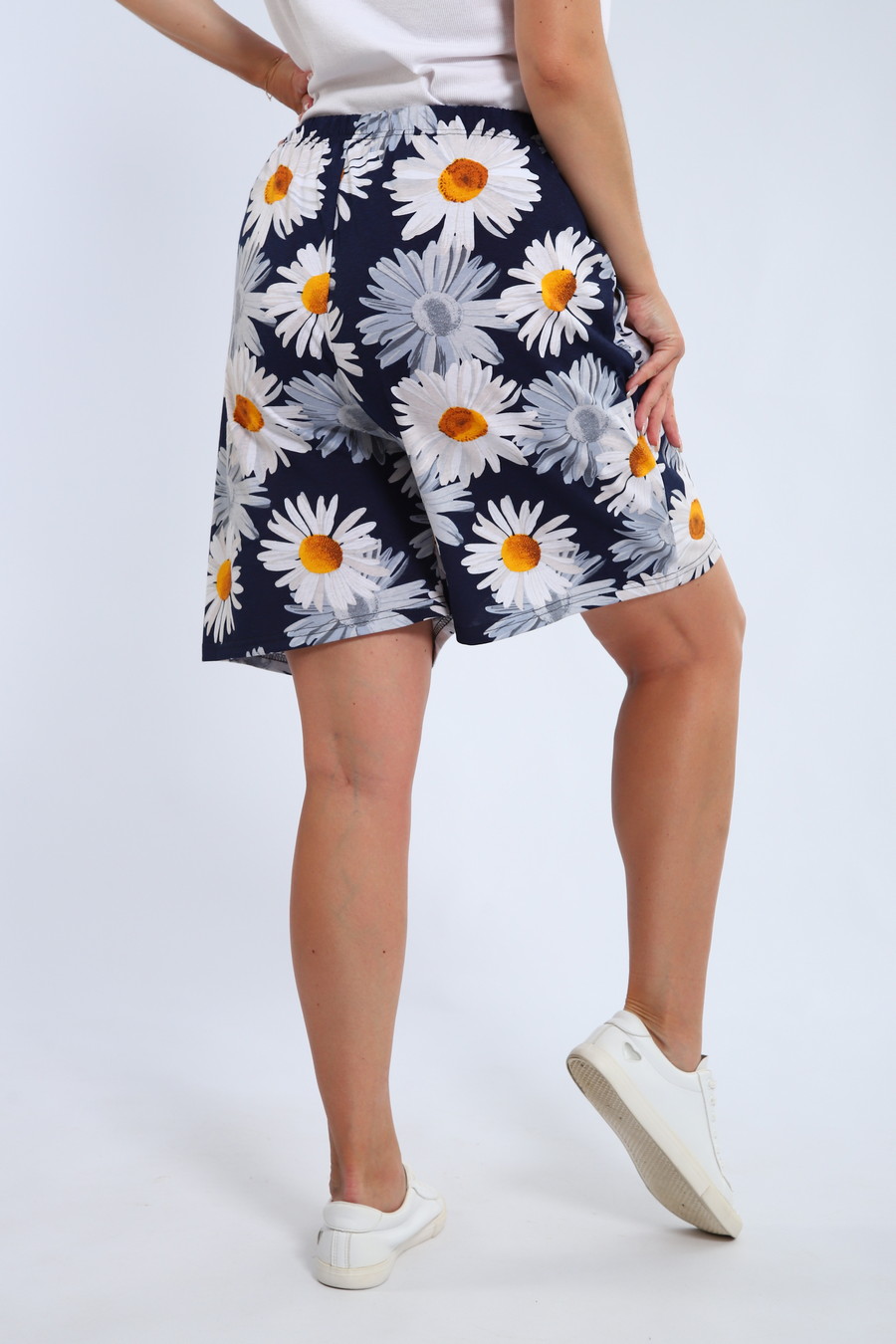 Шорты женские из кулирки Цветник ромашка макси