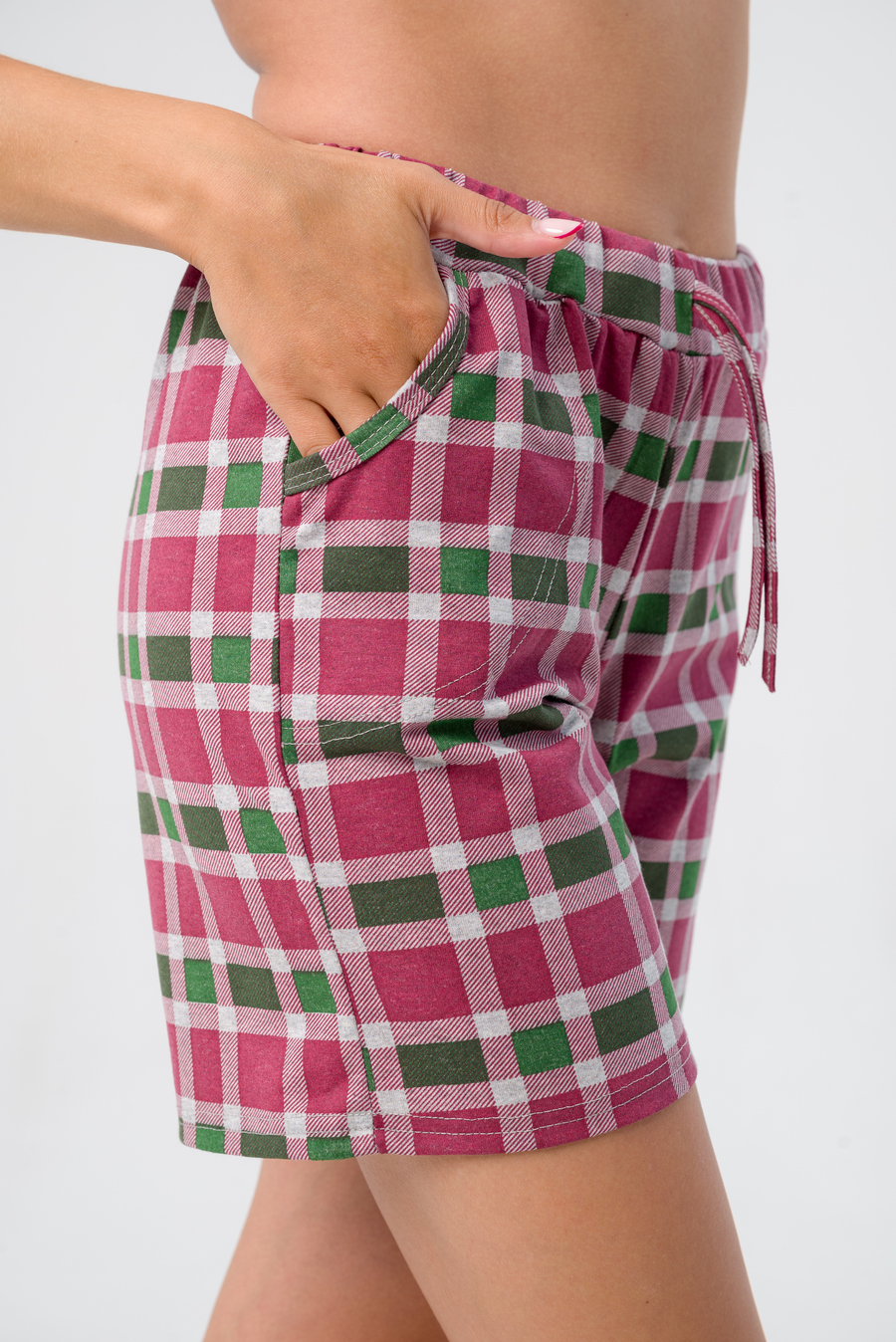 Шорты женские из кулирки Дачница красно-зеленая клетка