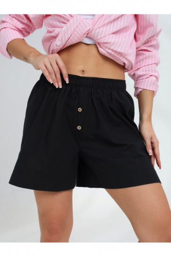 Шорты из хлопкового поплина. Модель имеет высокий  эластичный пояс, ширинку с декоративными пуговицами.