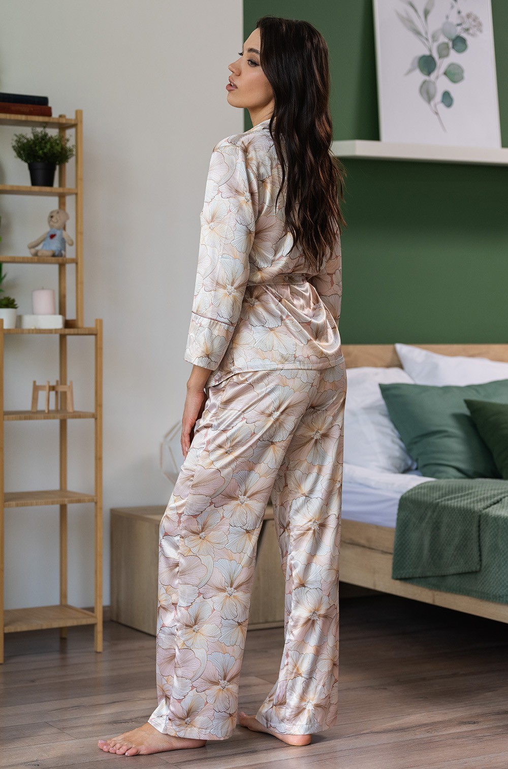 Комплект Mia-Amore состоит из рубашки с рукавами длиной 7/8, с центральной застежкой на пуговицы и брюк, выполнен из принтованного смесового шелка. Борт и воротник жакета декорированы контрастным кантом. Изделие комплектуется поясом.