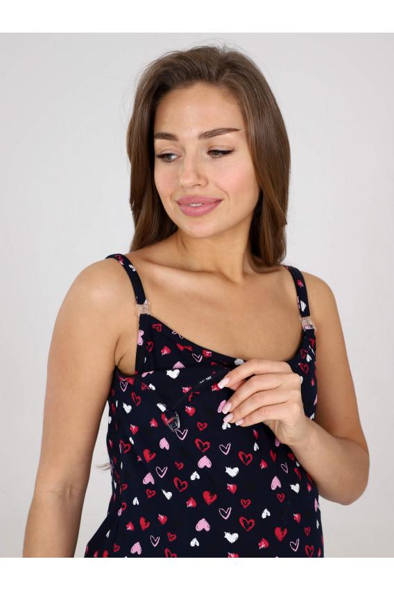 Сорочка для кормящих Ж-8.1560 темно-синий, сердечки