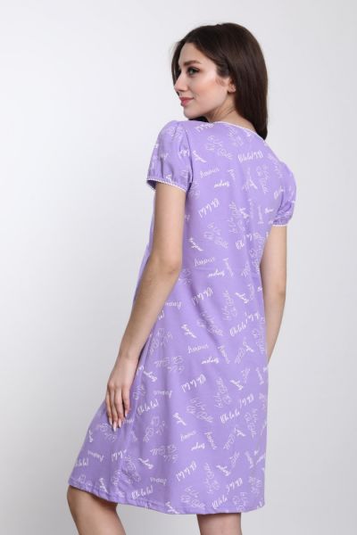 Ткань: кулирка; Состав: 100% хлопок; Сезонность: зима, весна, лето, осень; Рукав: короткий рукав; Стиль: домашний; Застежка: пуговицы; Производство: г. Иваново, швейное производство НАТАЛИ; Тип изделия: сорочки; Цвет: сиреневый