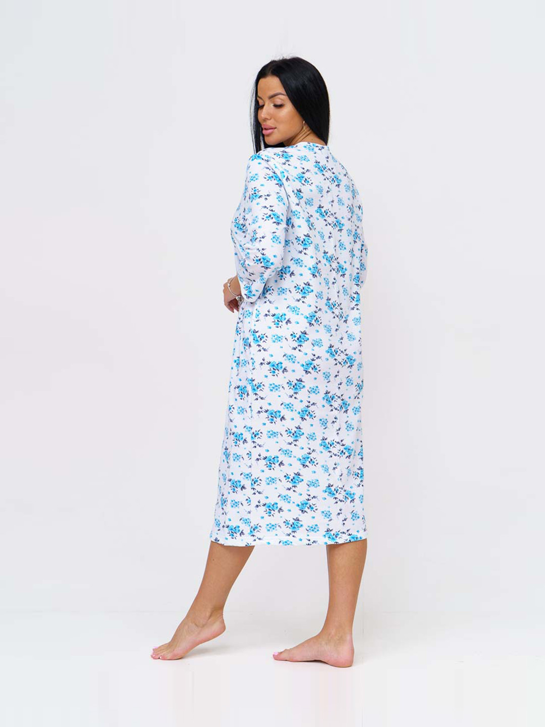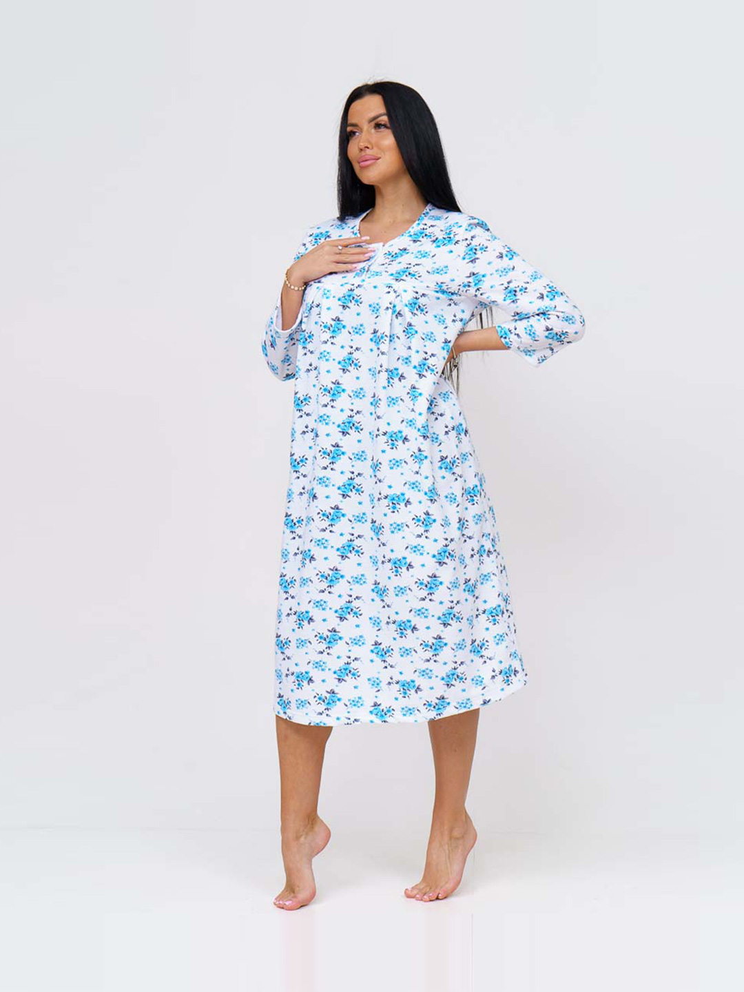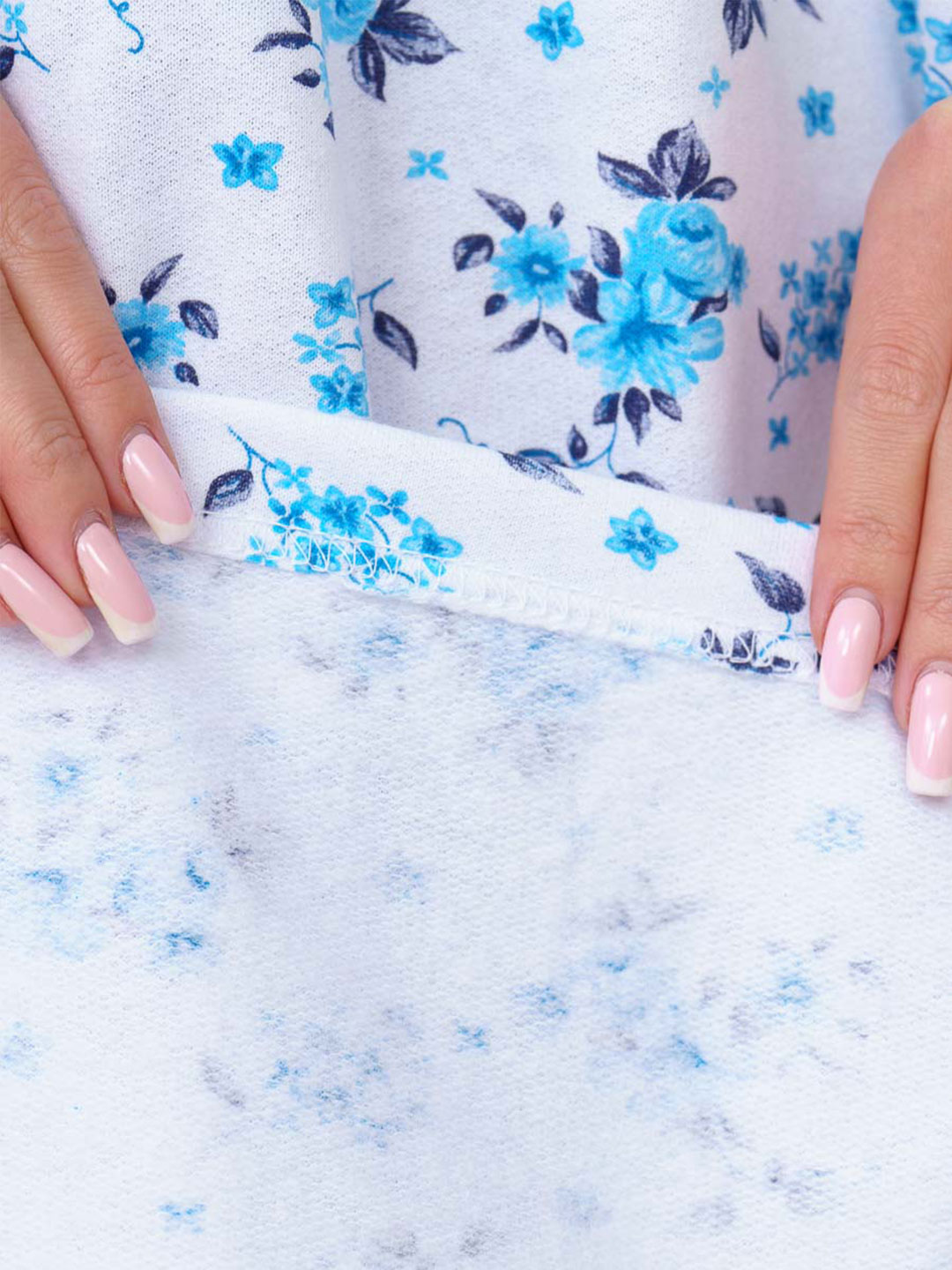 Ночная женская сорочка из футера с начесом, свободного силуэта, длиной ниже колена. Вырез горловины О-образный.