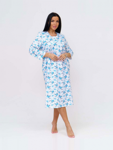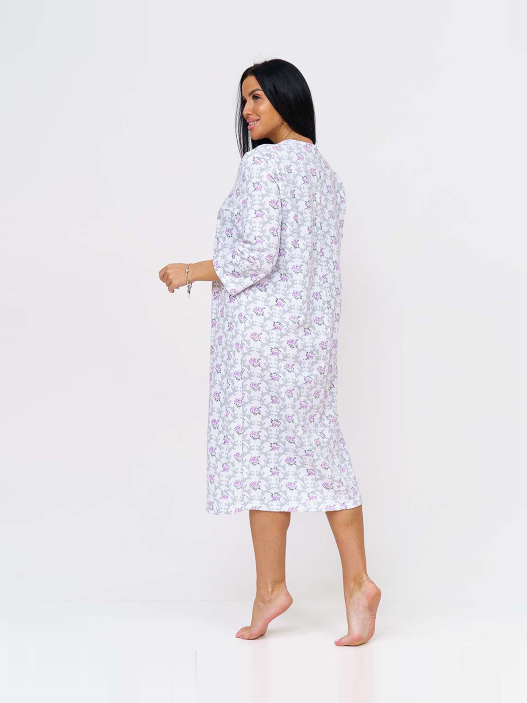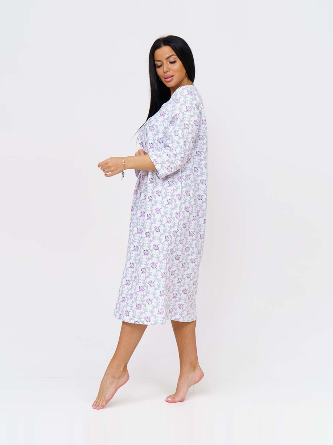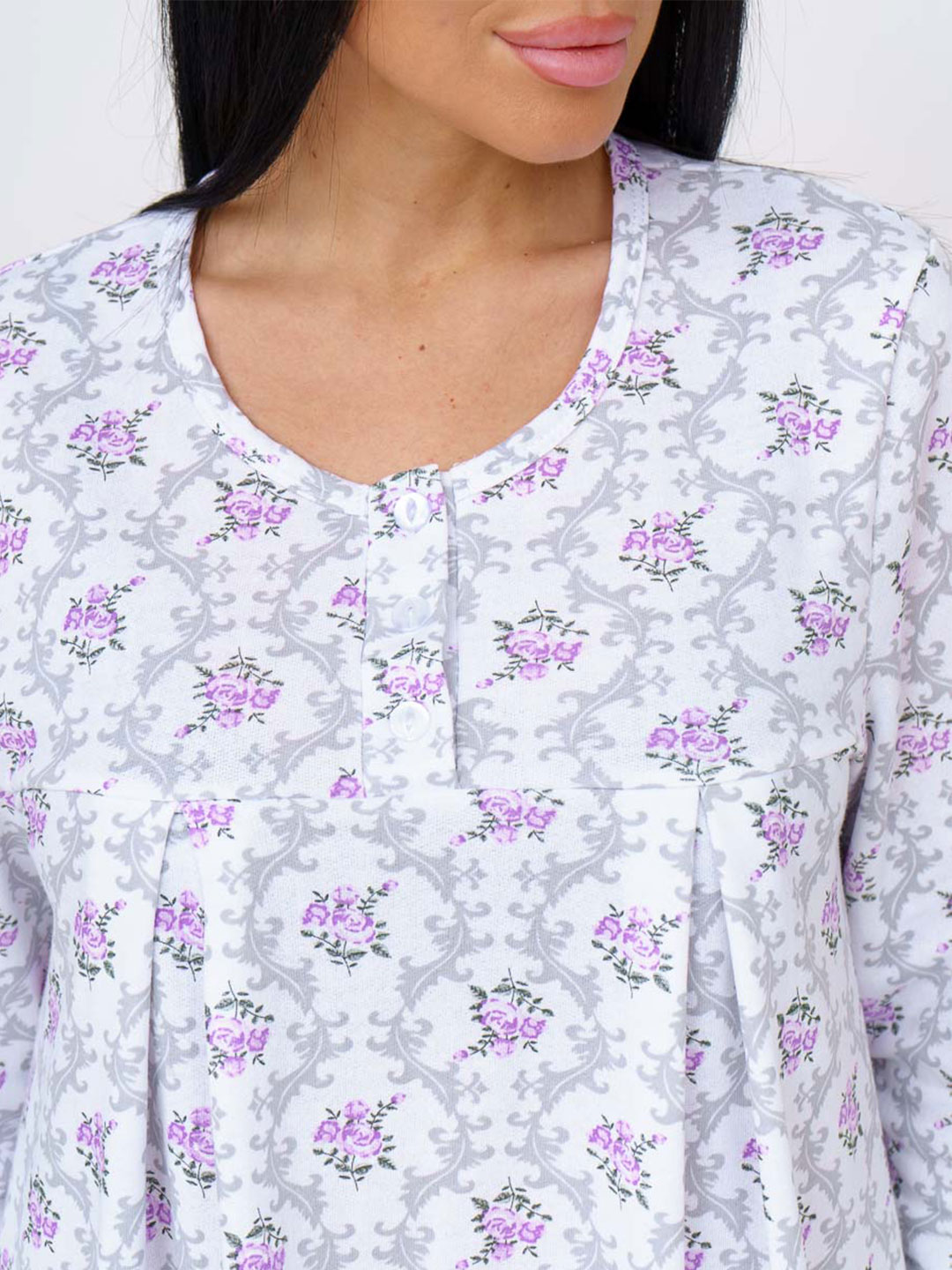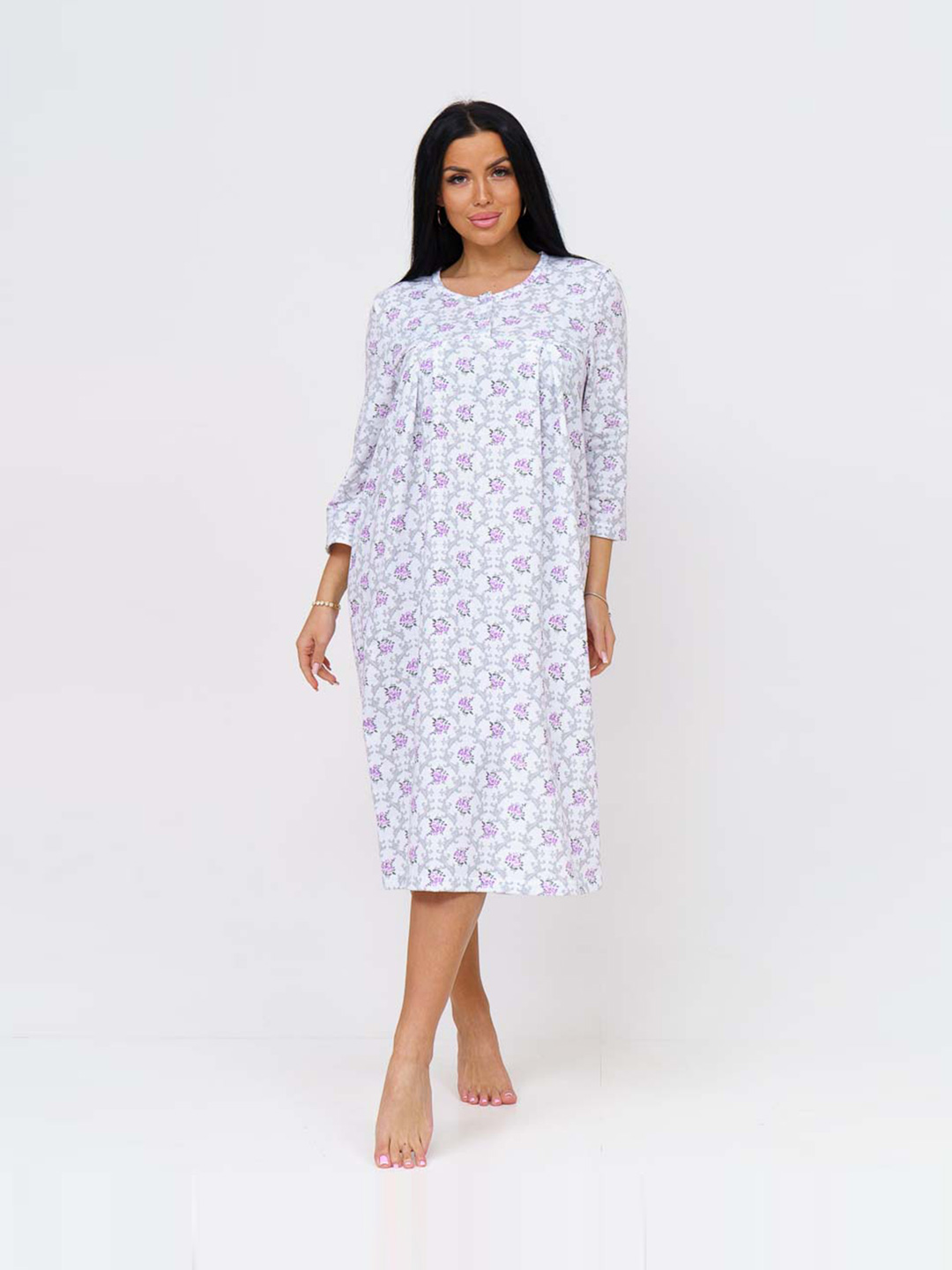 Ночная женская сорочка из футера с начесом, свободного силуэта, длиной ниже колена. Вырез горловины О-образный.