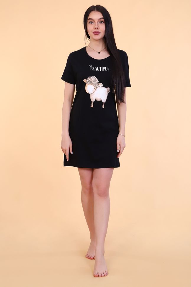 Ткань: кулирка; Состав: 100% хлопок; Сезонность: зима, весна, лето, осень; Рукав: короткий рукав; Стиль: домашний, молодежный; Производство: г. Иваново, швейное производство НАТАЛИ; Тип изделия: сорочки; Цвет: черный