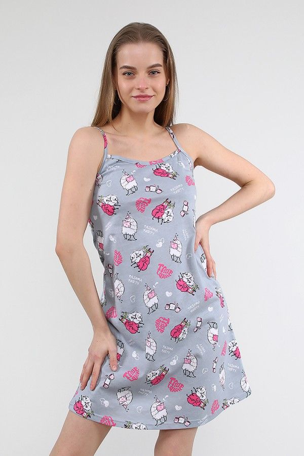 Ткань: кулирка; Состав: 100% хлопок; Сезонность: зима, весна, лето, осень; Рукав: без рукава; Стиль: домашний, молодежный; Производство: г. Иваново, швейное производство НАТАЛИ; Тип изделия: сорочки; Цвет: серый