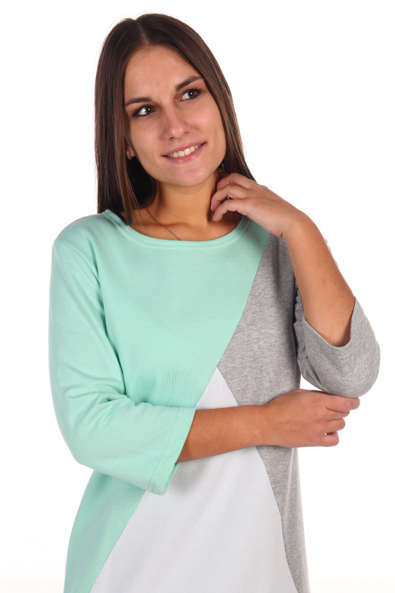 Описание: Сорочка женская со спущенным рукавом, вырез горловины лодочка, длина чуть выше колена.